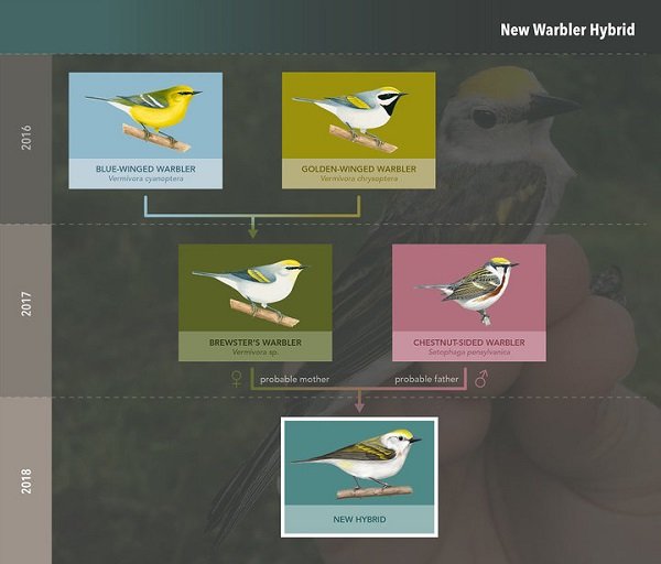 نکته مهم این است که پدر و مادر این پرنده نه تنها از دوگونه متفاوت هستند، بلکه متعلق به دو دسته کاملا متنوع از حیوانات هستند. پدر پرنده یادشده از خانواده Setophaga بوده و مادر آن از خانواده Vermivora است.