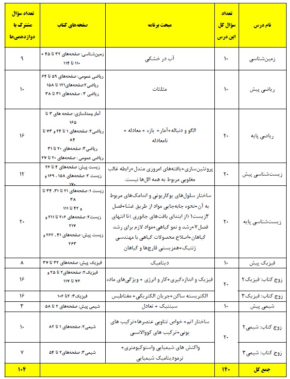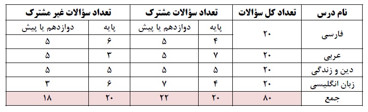 بدین ترتیب متوجه می شوید که سؤالهای مشترک کنکور، از چه قسمتهایی مطرح خواهد شد.