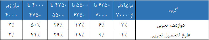 در جدول زیر مشخص شده است که هر بازه ترازی ، چنددرصد از هریک از گروه های دانش آموزان و فارغ التحصیلان وجود دارند.