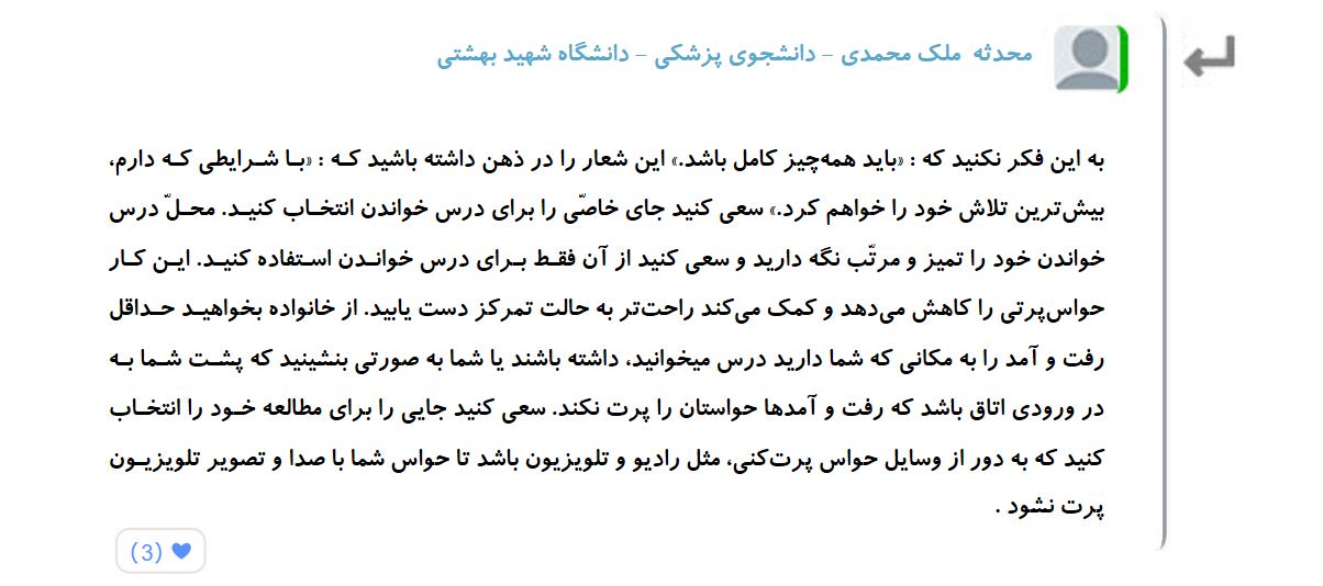 سارا شعبانی - دانشجوی پزشکی - دانشگاه علوم پزشکی تهران :