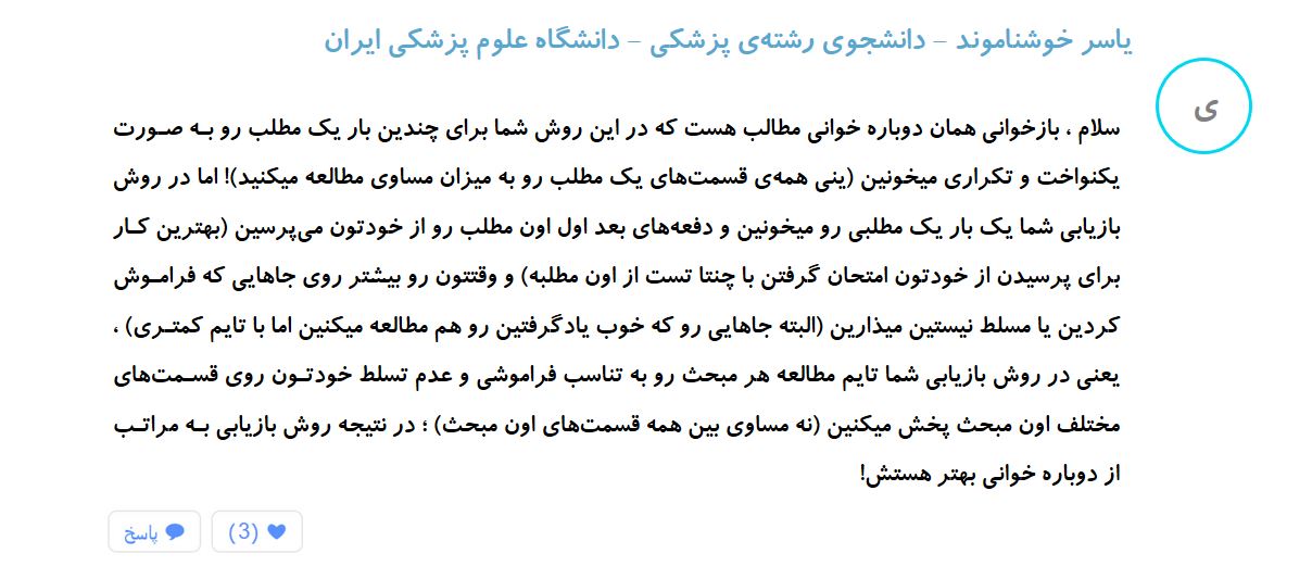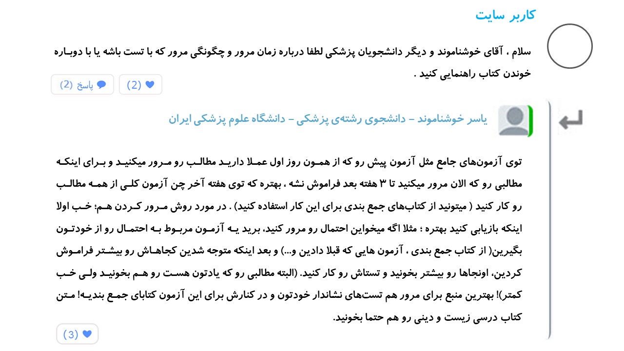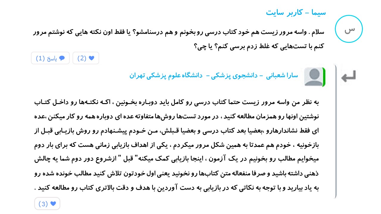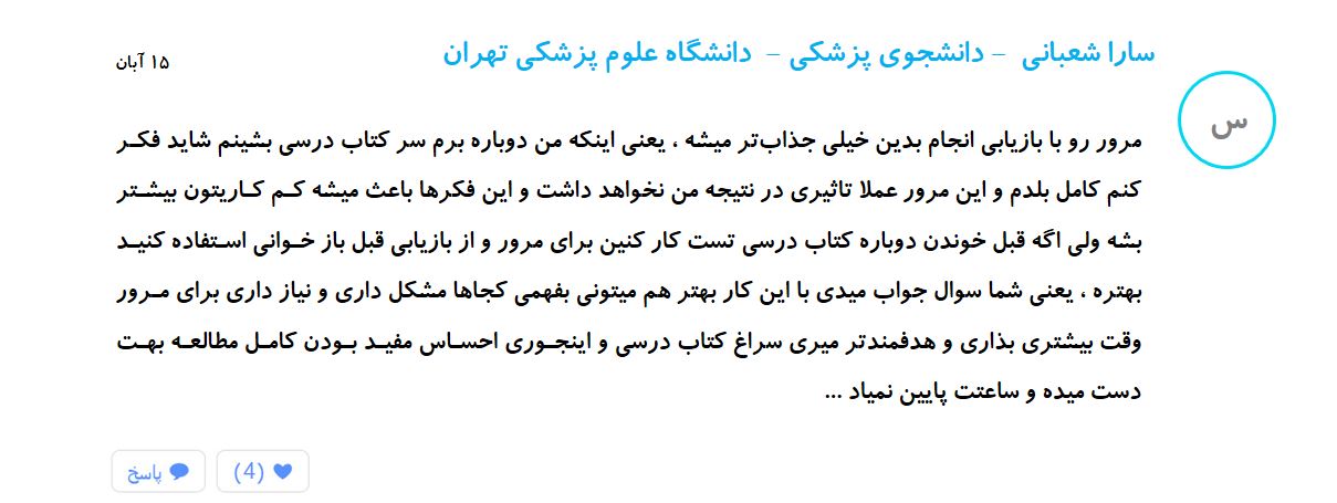 برای مرور کردن ۲ مبحث جدا از هم داریم بازخوانی و بازیابی . در بازخوانی شما مجدد از روی خلاصههای خود ، فرمولها و روشهای حل مسایل ، ریاضی و فیزیک و شیمی را مرور میکنید و نکات هایلایت شده خود در متن زیست و شیمی را بازخوانی میکنید . در روش بازیابی قبل از بازخوانی کردن شما ابتدا با حل تستهای نشان دار قبلی یا یک سری تست جدید خودتون رو ارزیابی می کنید و سپس به صورت هدفمند به بازخوانی مطالب از یاد رفته میپردازید ...