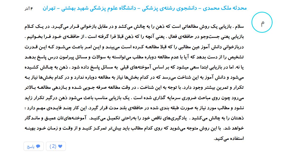 محدثه ملک محمدی - دانشجوی پزشکی - دانشگاه شهید بهشتی :