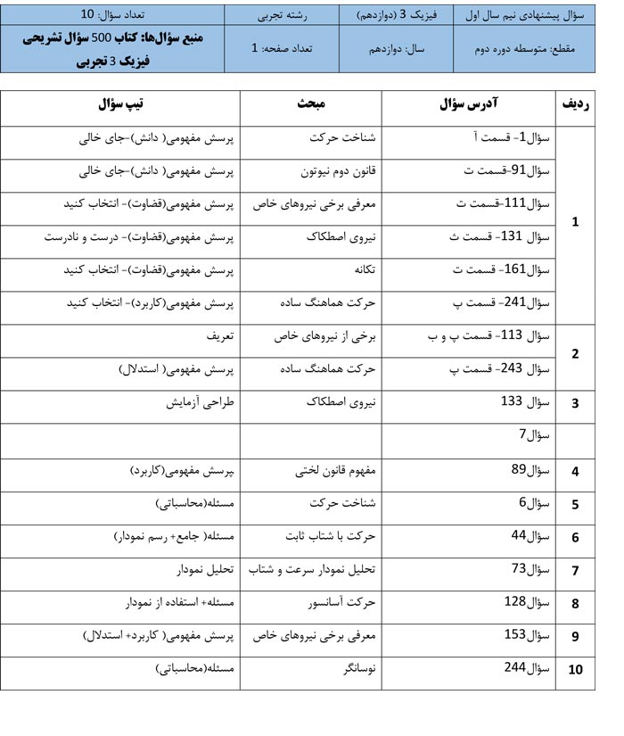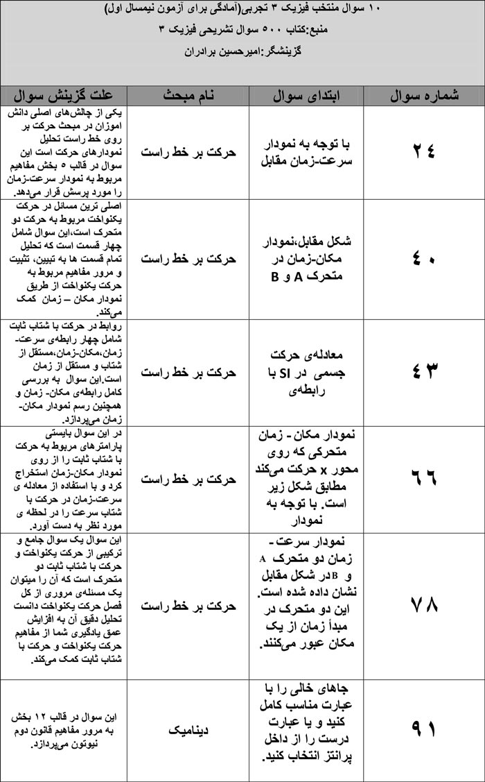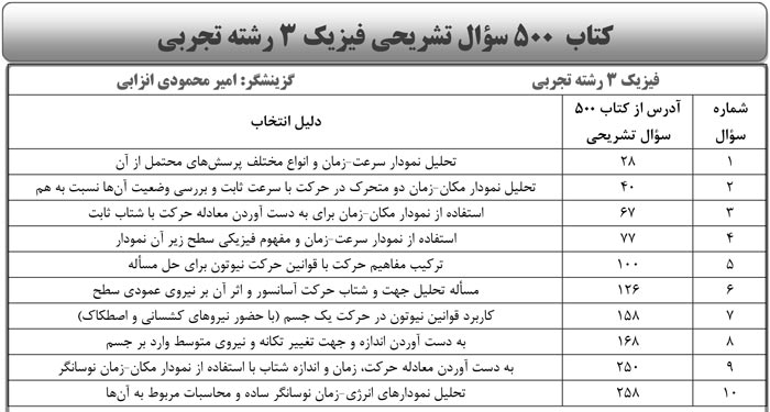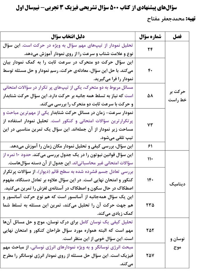 سؤالهای پیشنهادی از کتاب ۵۰۰ سؤال تشریحی فیزیک ۳ تجربی- نیمسال اول