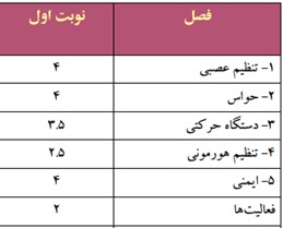 2 | فصل1 تنظیم عصبی | سوال 76 صفحه 18 کتاب پر تکرار | 1-این سوال ترکیبی بین صفحه های 10، 14 و18 است، پس چند صفحه را با این سوال مرور می کنید. 2-تا کنون 11 بار در امتحانات نهایی به صورت کشوری مطرح شده است(بیشترین تکرار). 3- نکات این سوال هم مربوط به متن صفحه 10، فعالیت 7 فصل 1 صفحه 18، متن صفحه 18 و البته شکل است. 4- فعالیت 7 مربوط به تشریح مغز است و یکی از فعالیت های مهم و پر سوال فصل 1 است. |