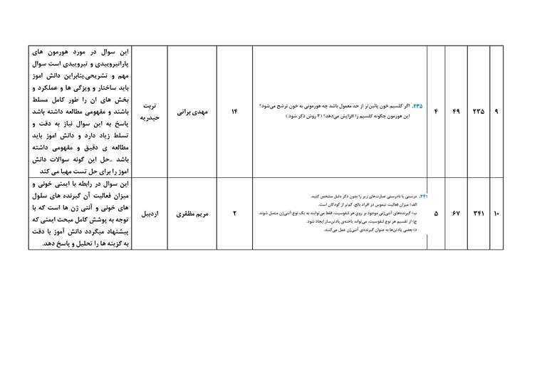 8 | فصل 4 تنظیم هورمونی | سوال 215 صفحه 43 کتاب پر تکرار | 1-اولا این که با یکی از تیپ های سوال که تشخیص عبارات درستی و نادرستی است، آشنا می شوید. برای این که به این تیپ سوال ها پاسخ بدهید، باید آن را خوب و عمیق بفهمید و البته باید بتوانید استدلال کنید . 2-درضمن این سوال تاکنون چندین بار در مدارس مختلف تکرار شده. 3-باعث درک مطلب و مرور چند صفحه کتاب می شود و از طرفی بین متن و شکل ارتباط برقرار می کنید. 4-مهمتر اینکه با این سوال می توانید بحث پیک شیمیایی و نقش ان در تنظیم عصبی را یاد بگیرید |