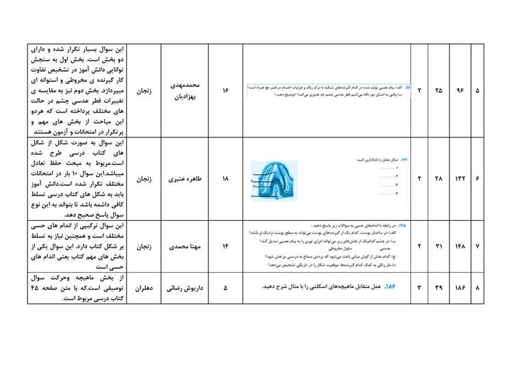 این هم سواالات پیشنهادی خودم به شما دانش اموزان عزیز: