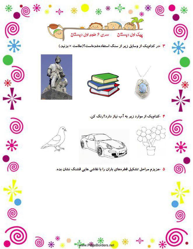 پیک اول دبستان-پیک اول ابتدایی-پیک آدینه-پیک هفتگی-نمونه سوالات ریاضی و علوم و فارسی