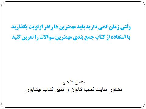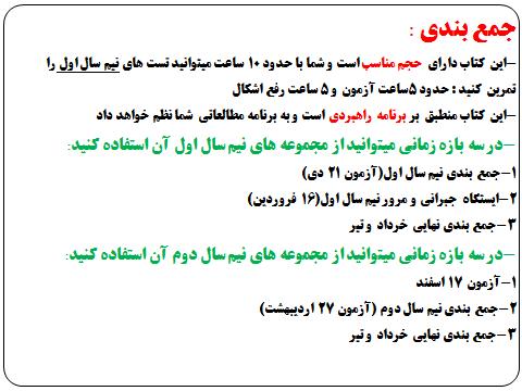 وقتی زمان کمی دارید باید مهمترینها رادر اولویت بگذارید با استفاده از کتاب جمع بندی مهمترین سوالات را تمرین کنید