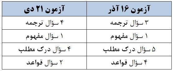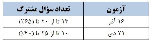 همان طور که مشاهده میشود بیشتر سؤالات مشترک از مبحث ترجمه و درک مطلب است.