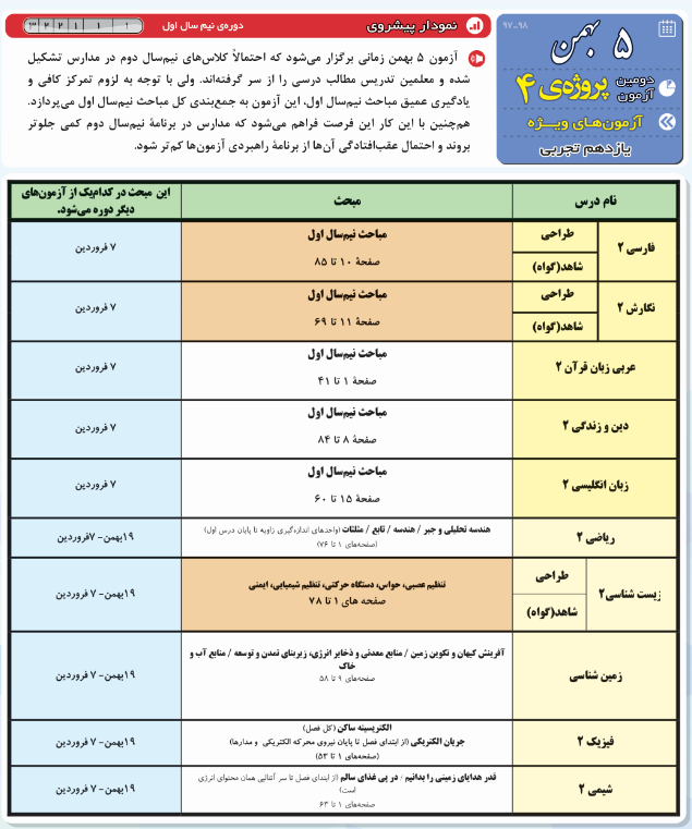 آنچه که در مورد آزمون 5 بهمن یازدهم تجربی باید بدانید: