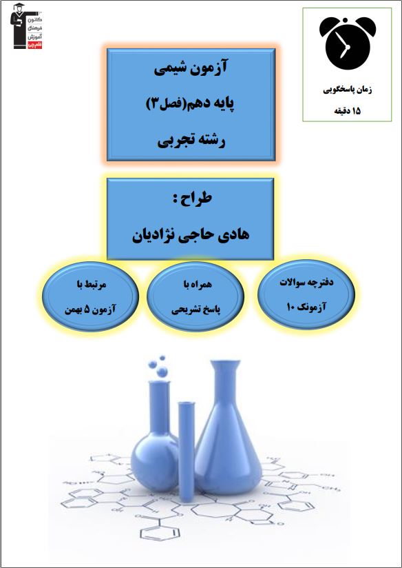 آزمونک فصل 3 شیمی دهم همراه با پاسخ تشریحی منطبق با آزمون 5 بهمن ویژه گروه دوازدهم تجربیدانلود در قسمت فایل های ضمیمهتهیه شده توسط هادی حاجی نژادیان