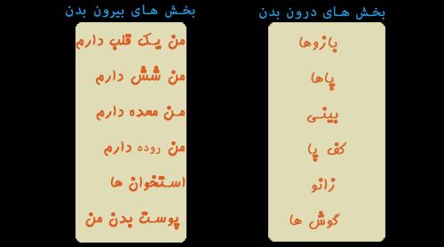 مغز من سه قسمت دارد: من ازمغز قسمت یک، هر وقت که می بینم می شنوم، لمس می کنم، صحبت می کنم و یا ماهیچه هایم را حرکت می دهم، استفاده می کنم.