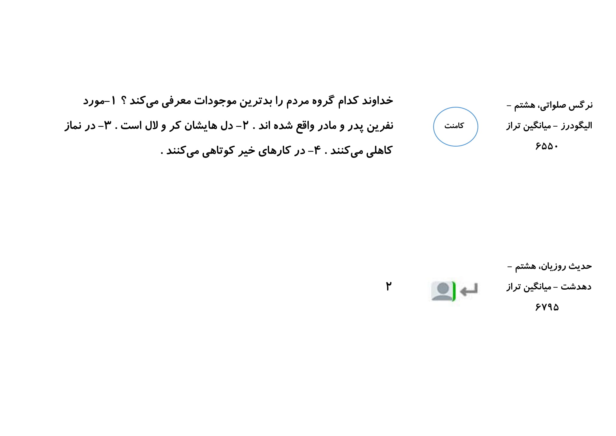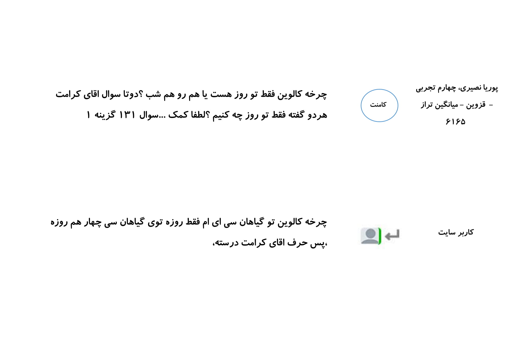 هر شب بهترین پرسش و پاسخ های درسی شما در میان کامنت های صفحات مقاطع، بر روی سایت قرار خواهد گرفت.