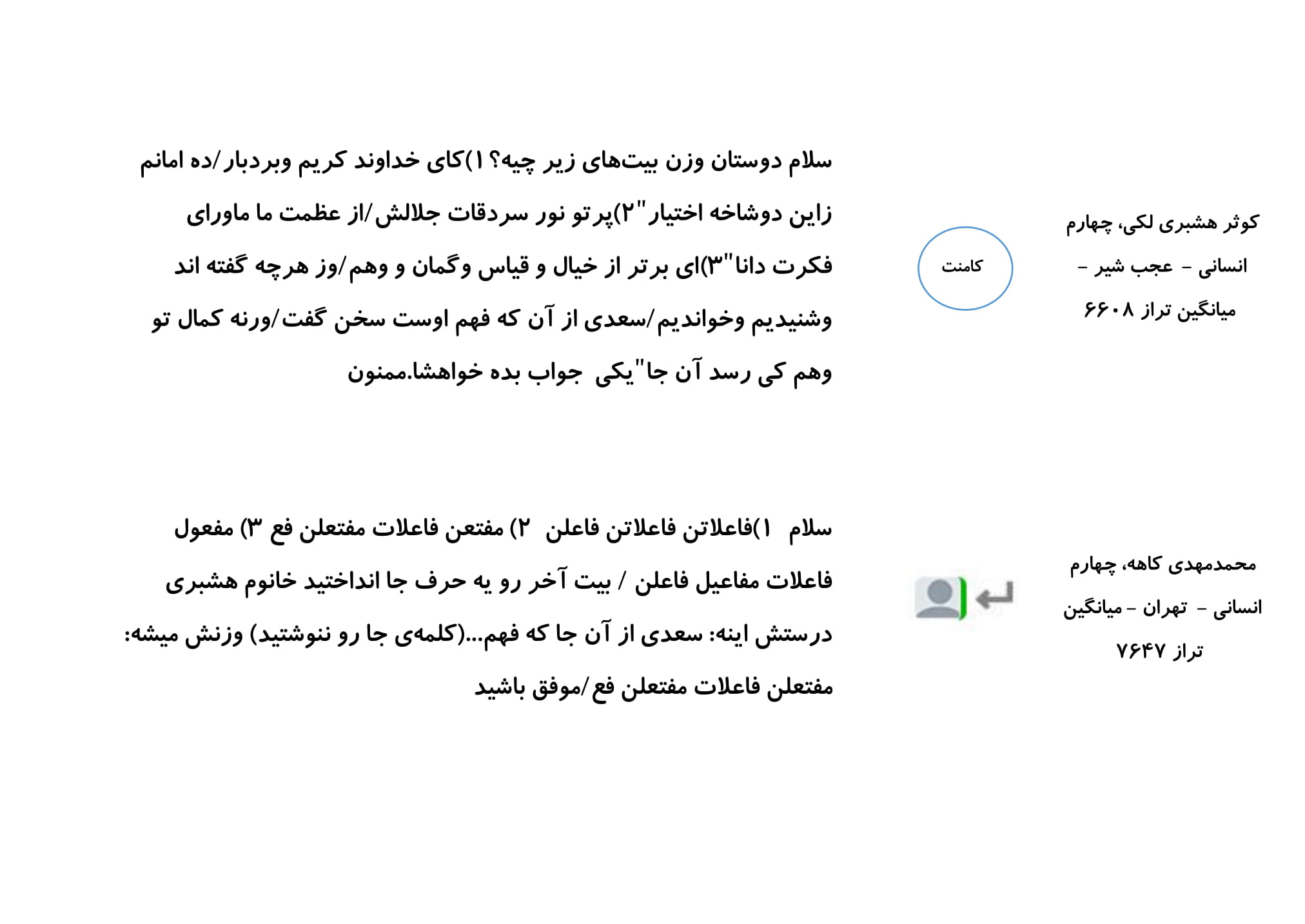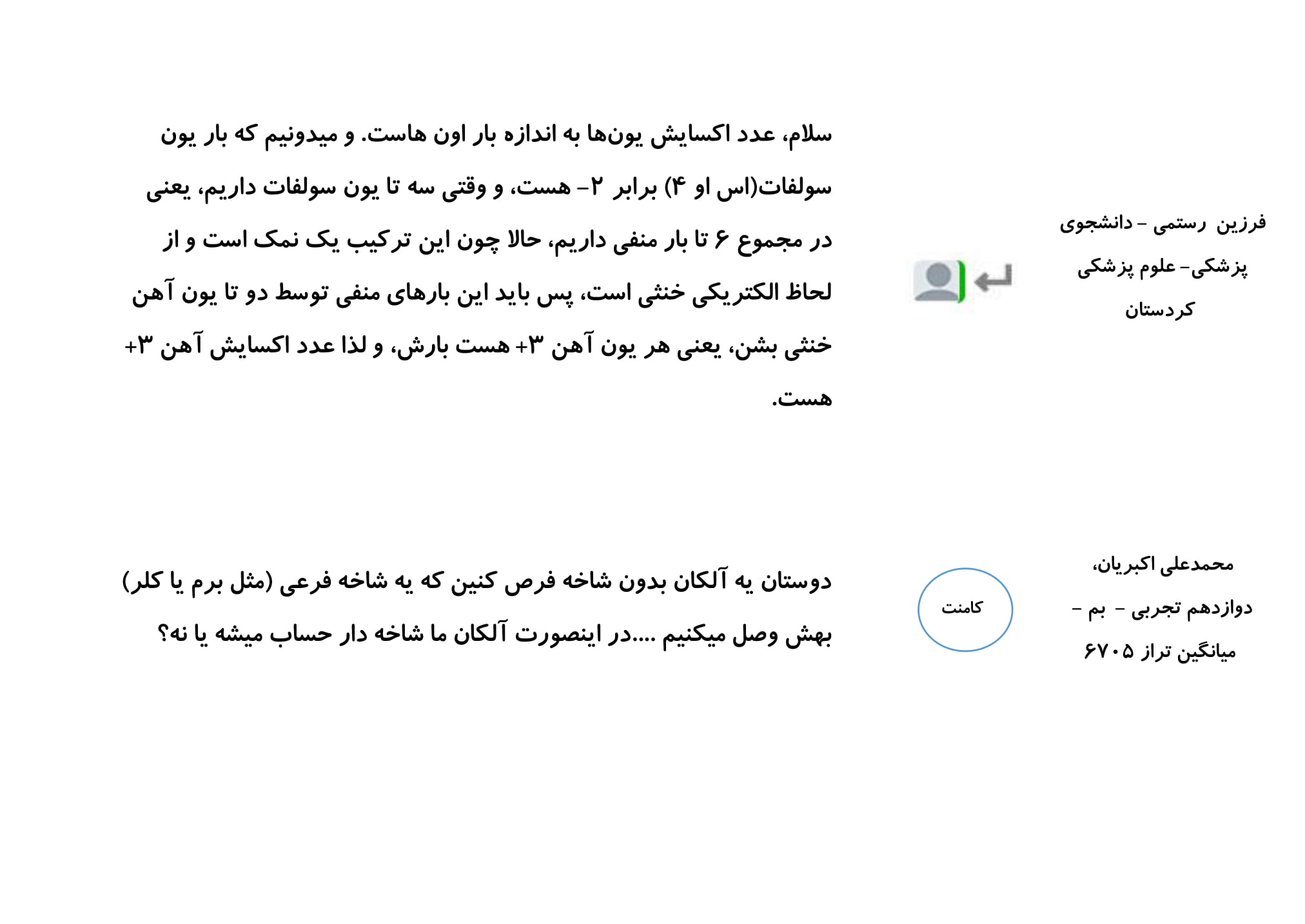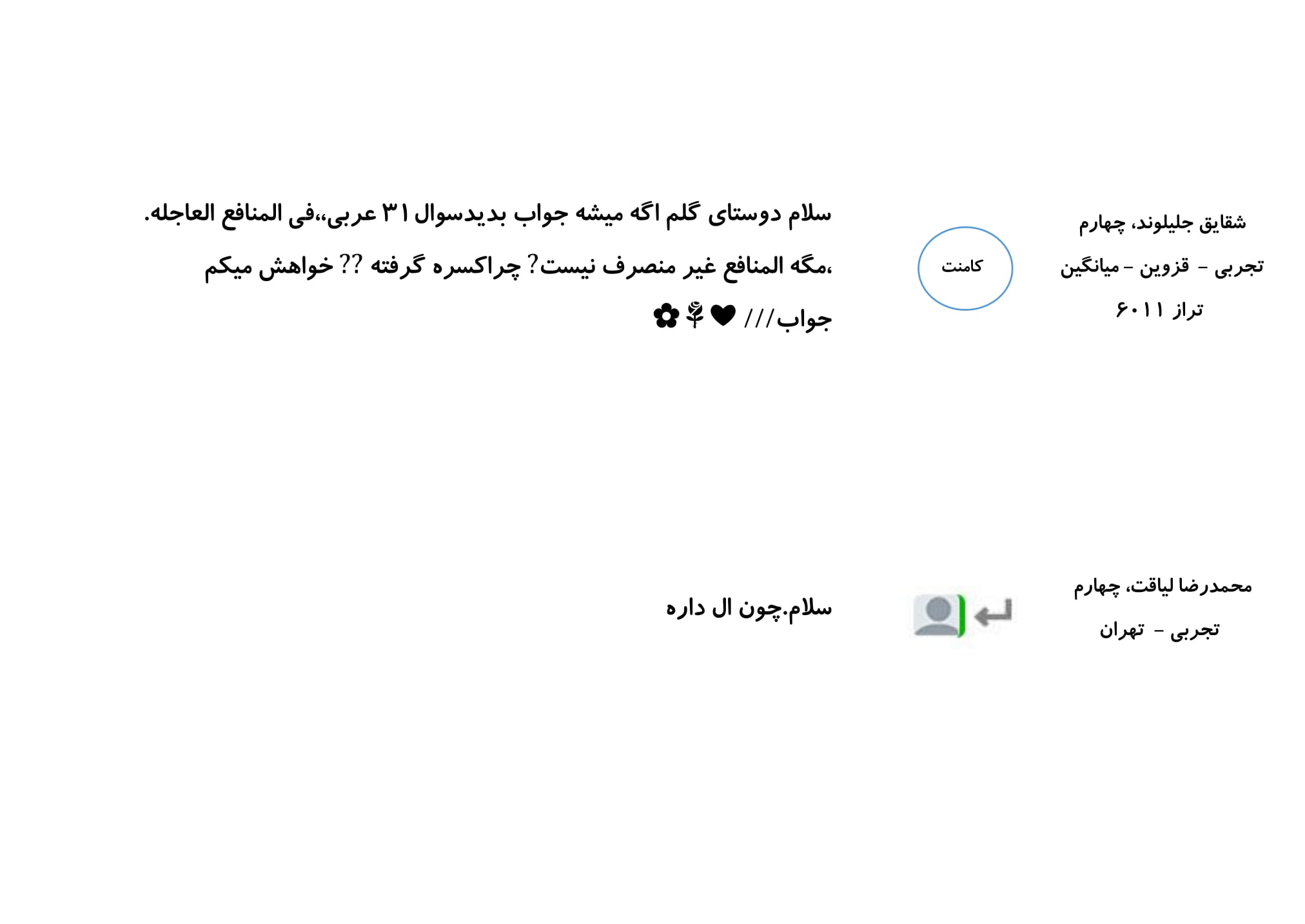 کامنتهای درسی منتخب (شنبه 20 بهمن)