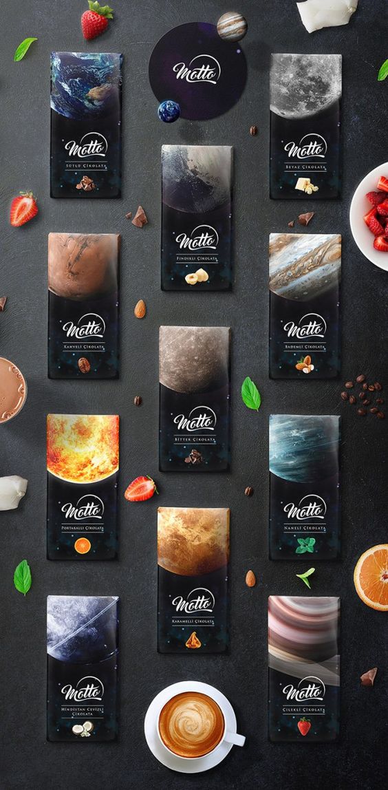 معمولا برای هیجان انگیز نشان دادن محتویات داخل بسته بندی یا لوکسوری نشان دادن محتویات و یا رنر از رتکیب های مشکی و تیره استفاده میکنند.