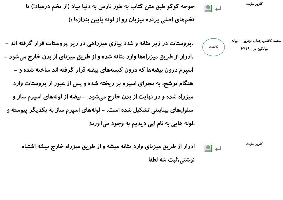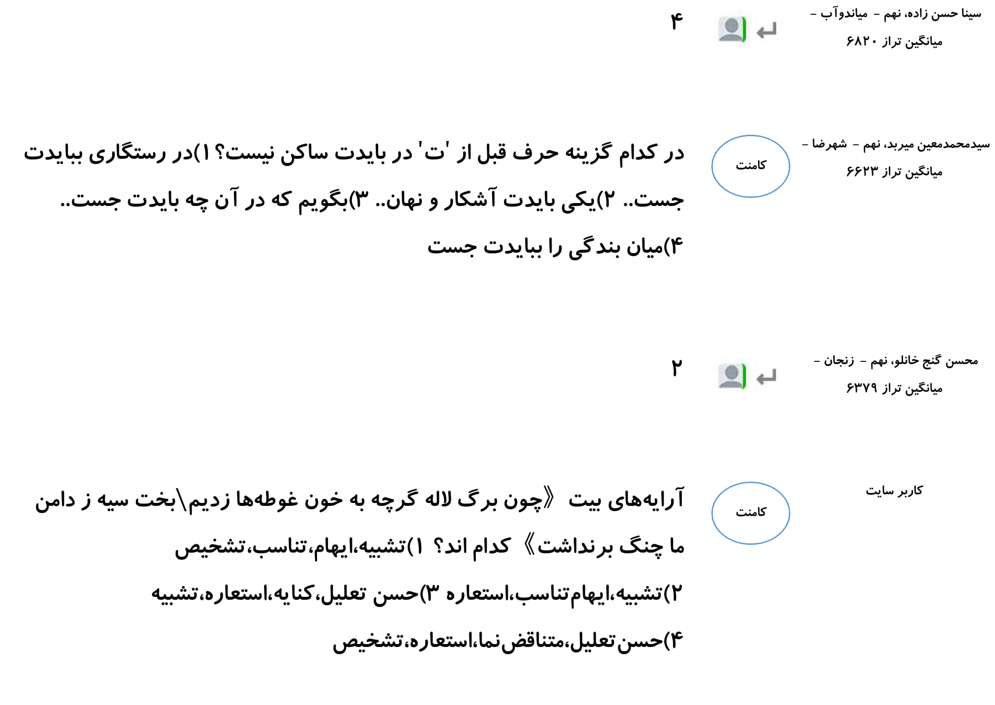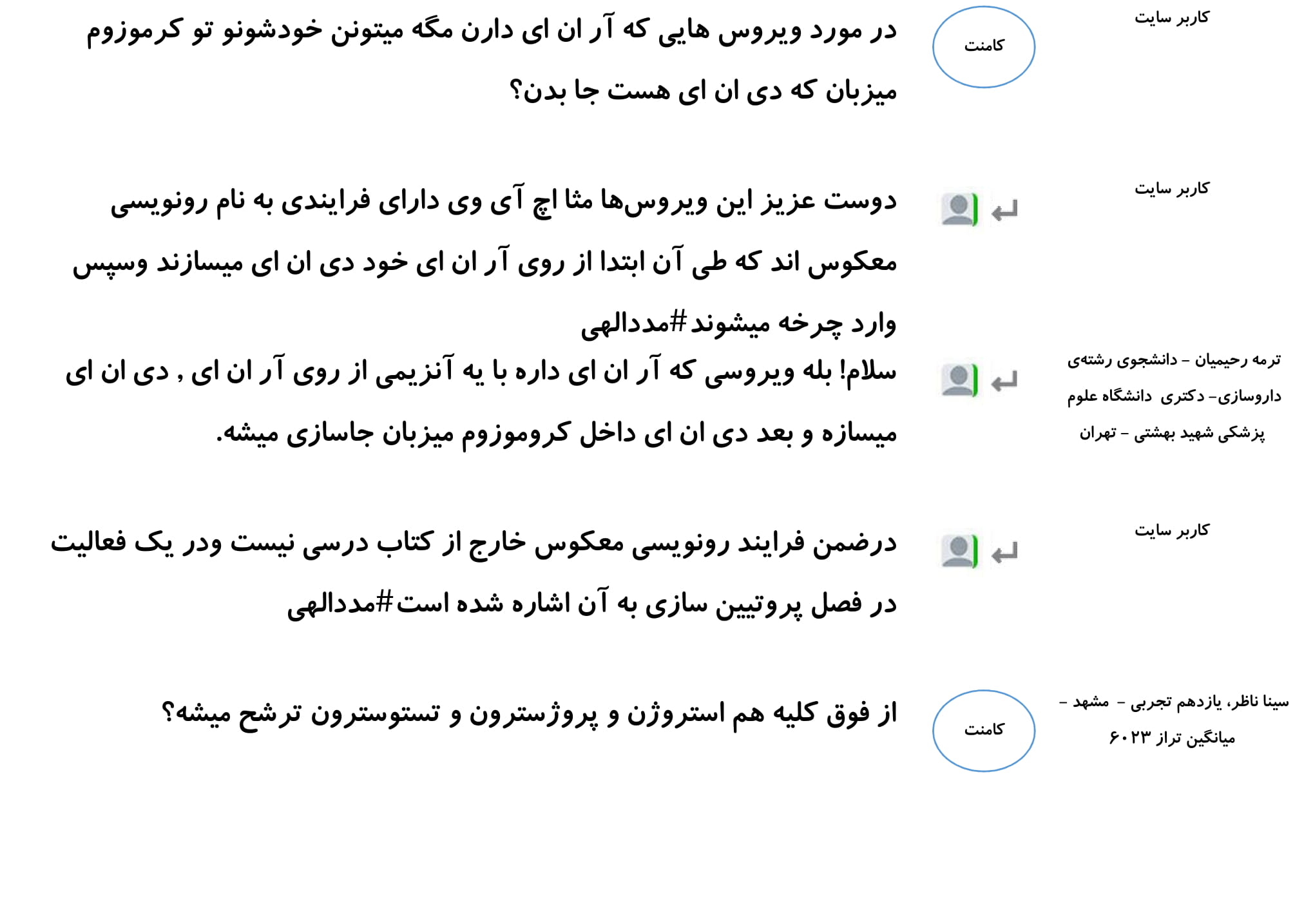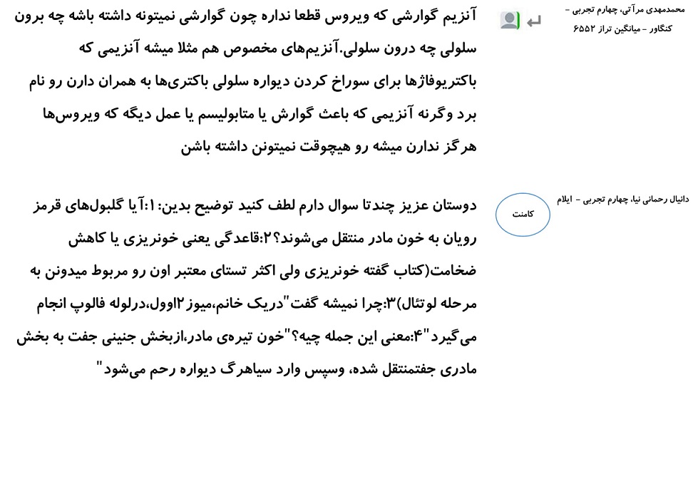هر شب بهترین پرسش و پاسخ های درسی شما در میان کامنت های صفحات مقاطع، بر روی سایت قرار می گیرد.