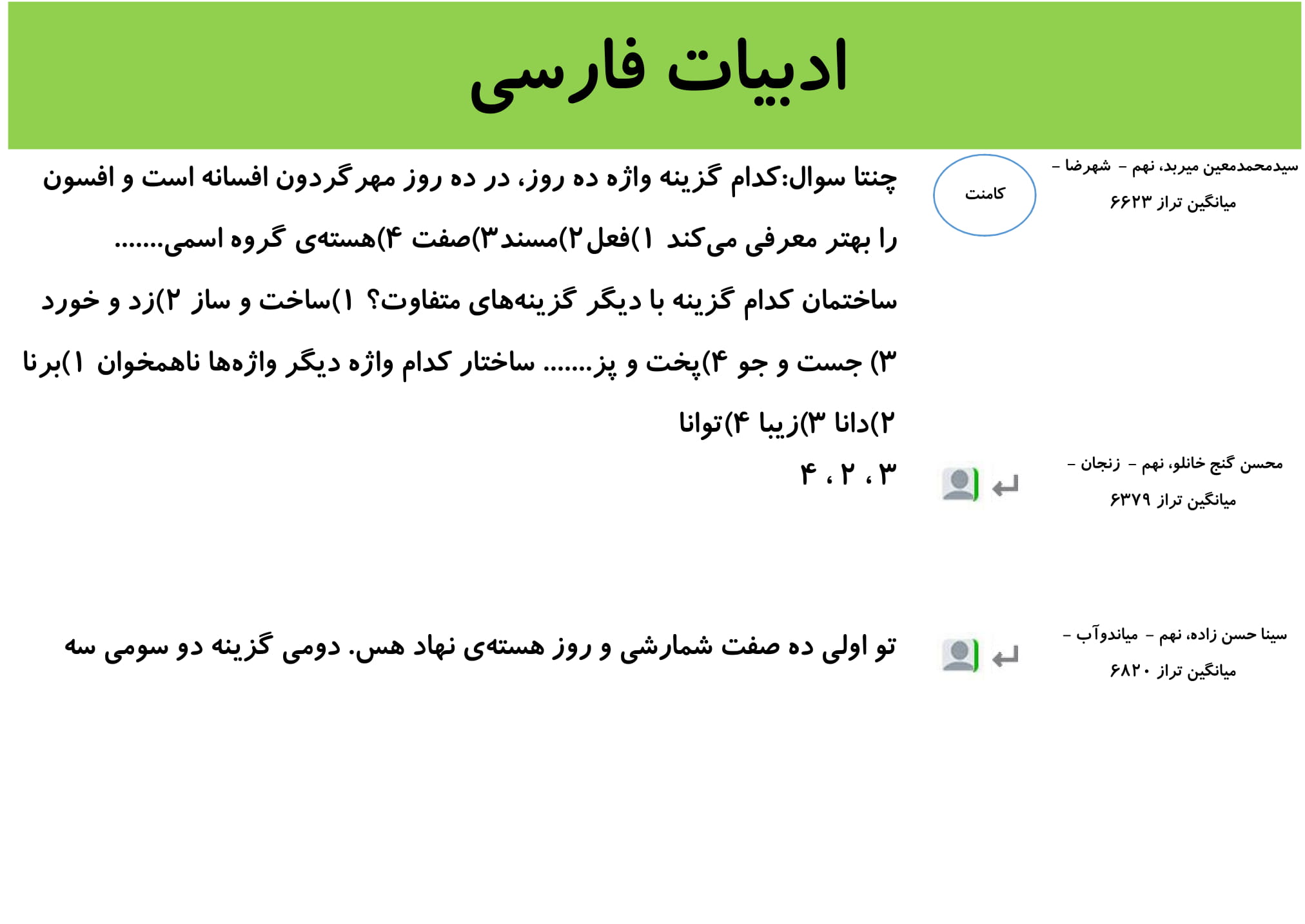 کامنتهای درسی منتخب (پنج شنبه 9 اسفند)