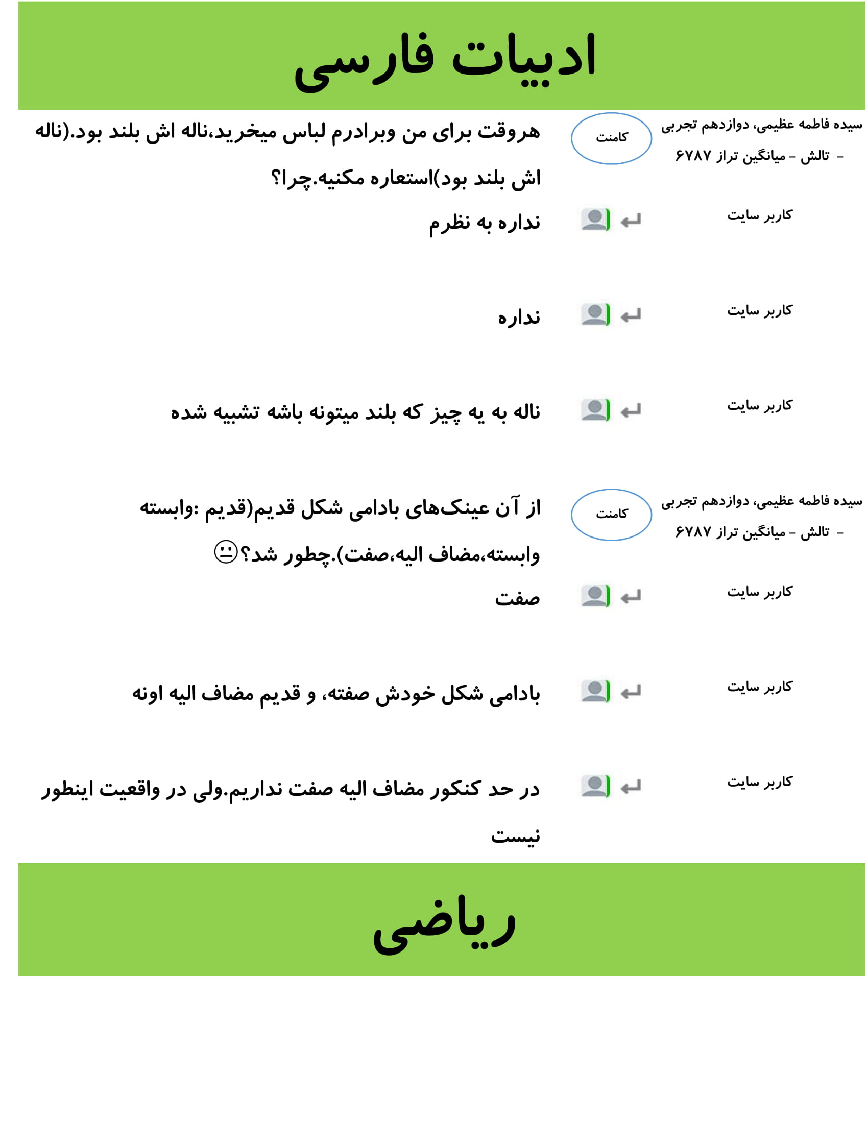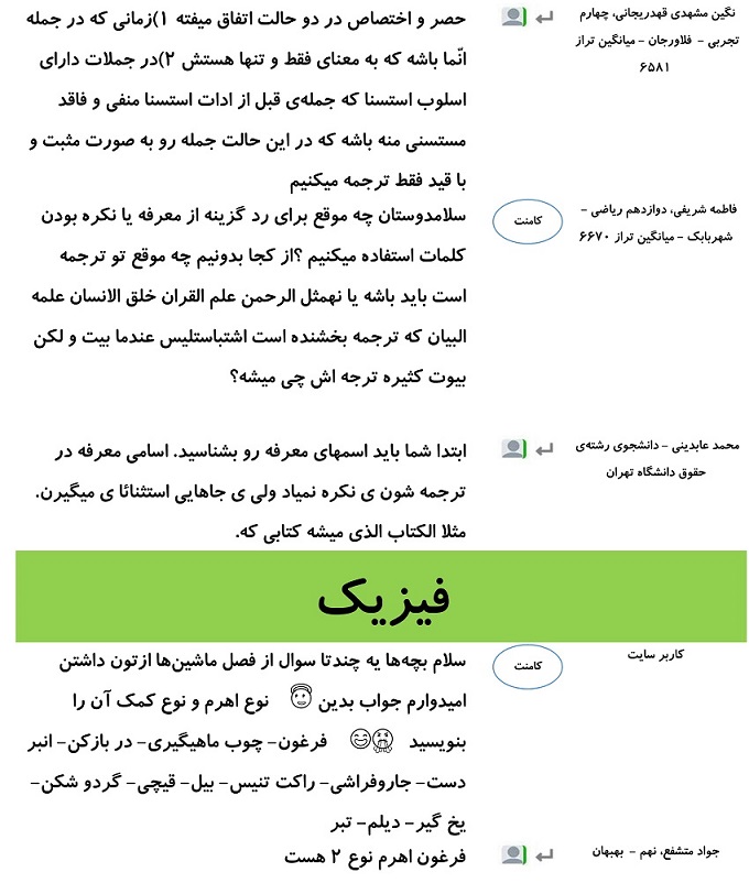 هر شب بهترین پرسش و پاسخ های درسی شما در میان کامنت های صفحات مقاطع، بر روی سایت قرار می گیرد.