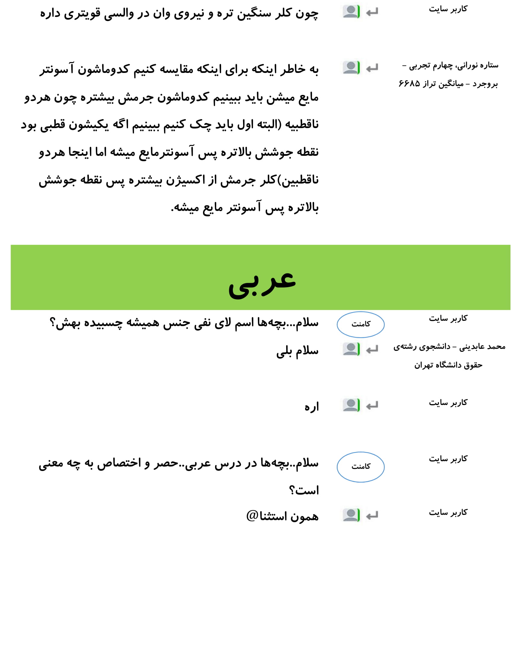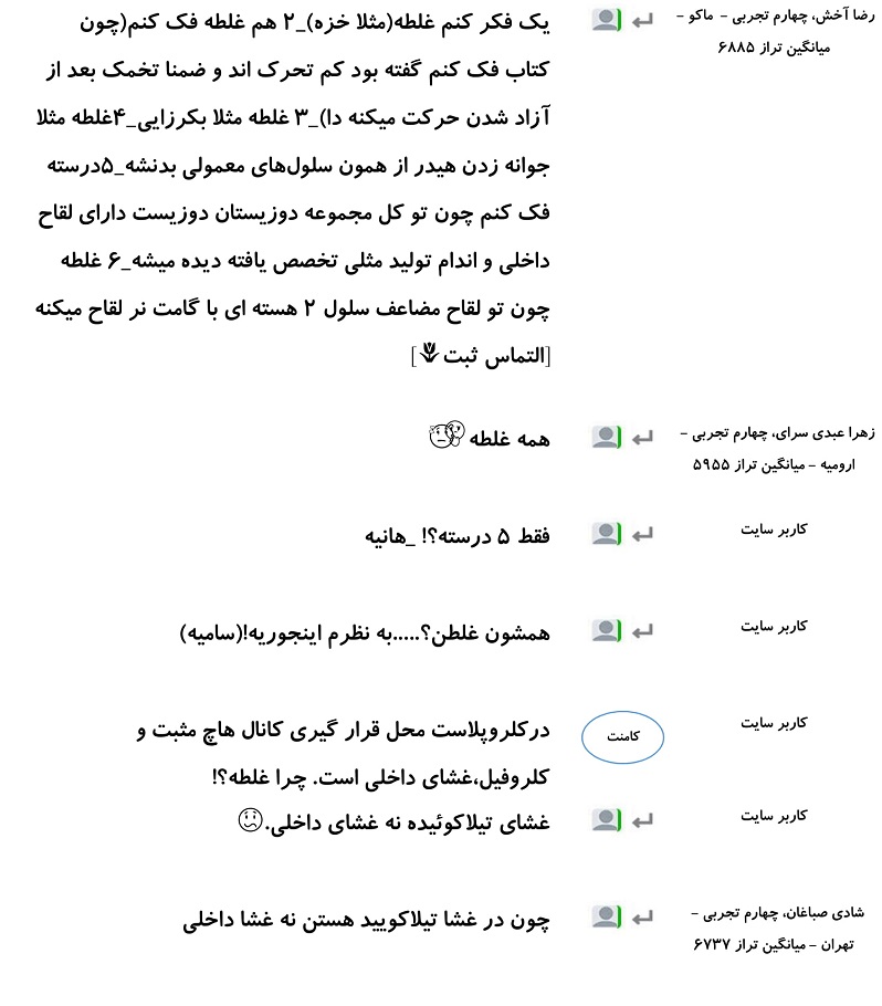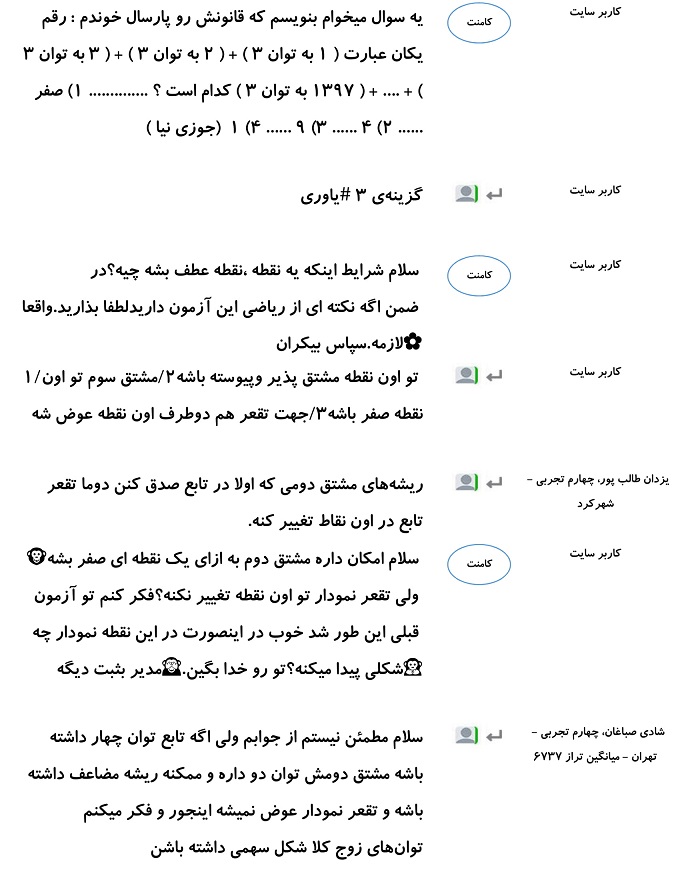 کامنتهای درسی منتخب (جمعه 10 اسفند)