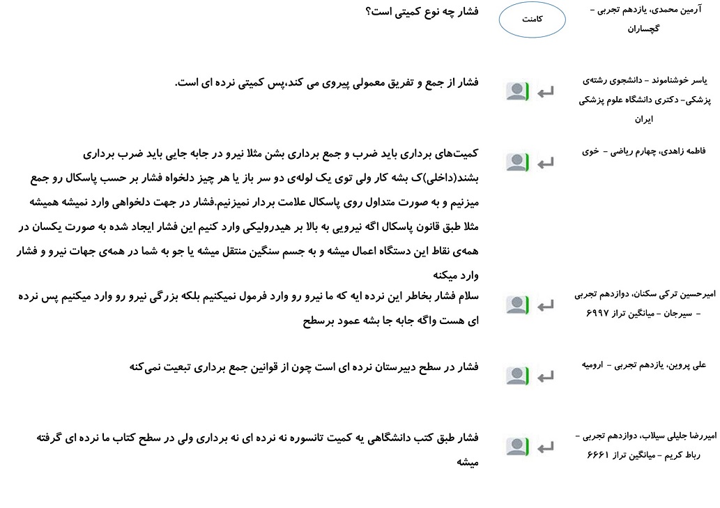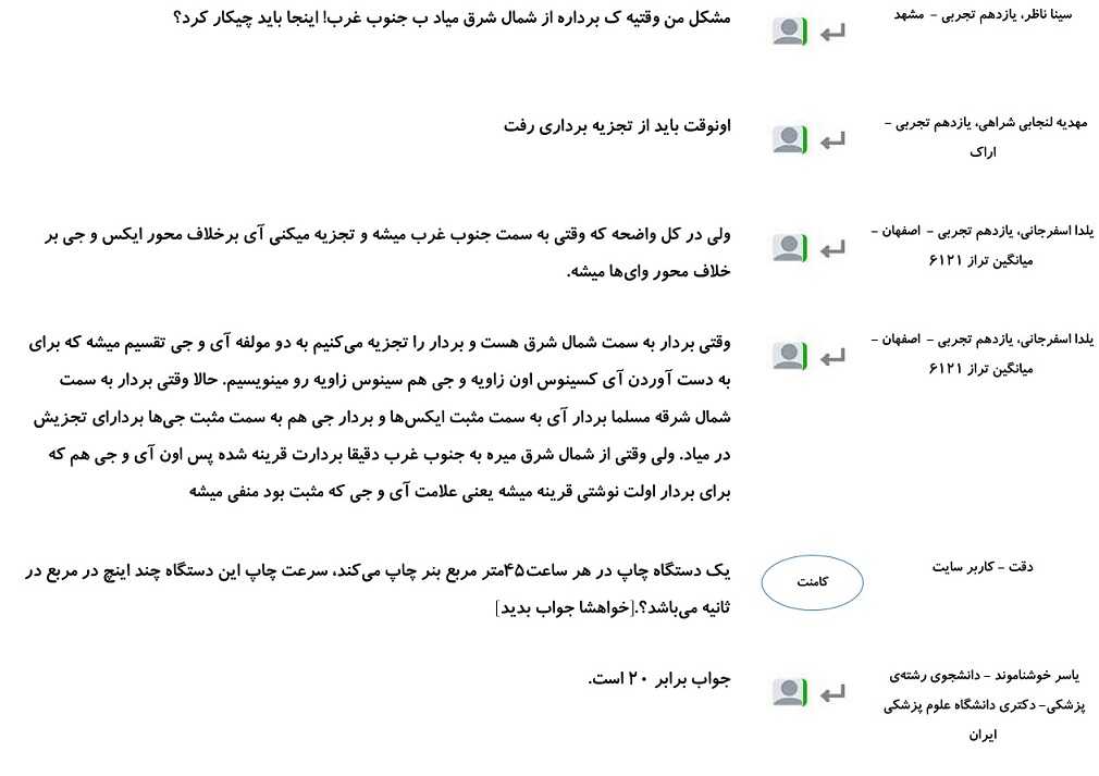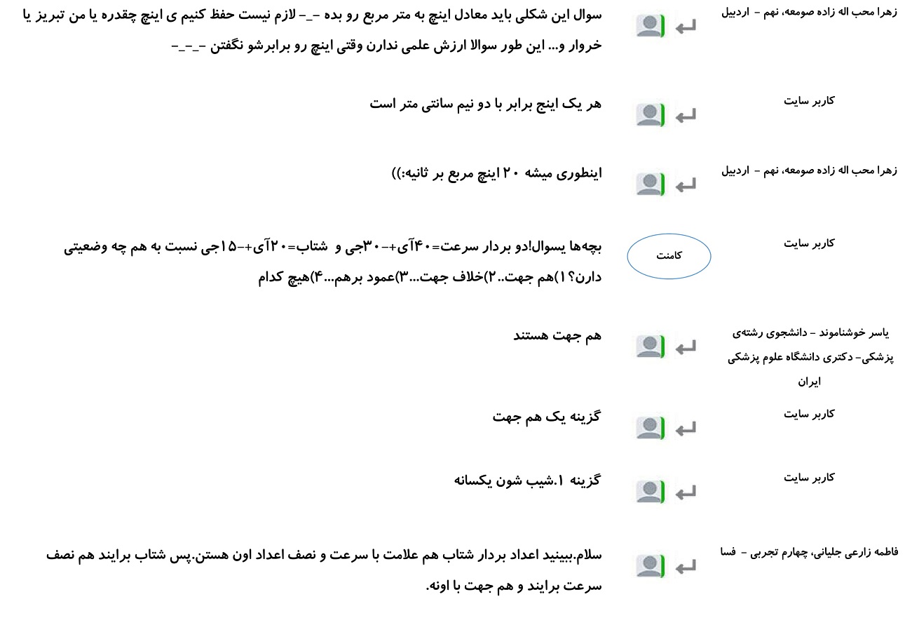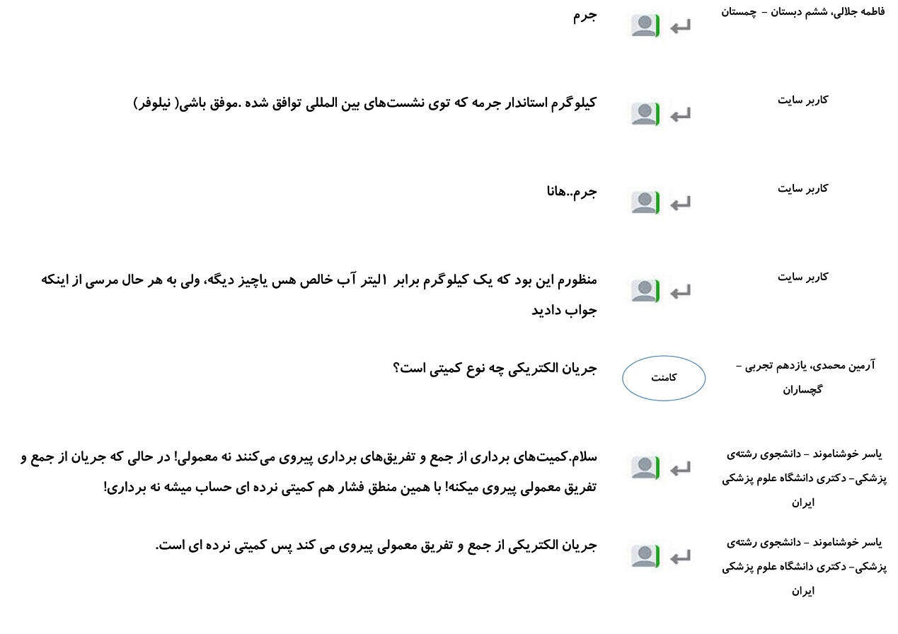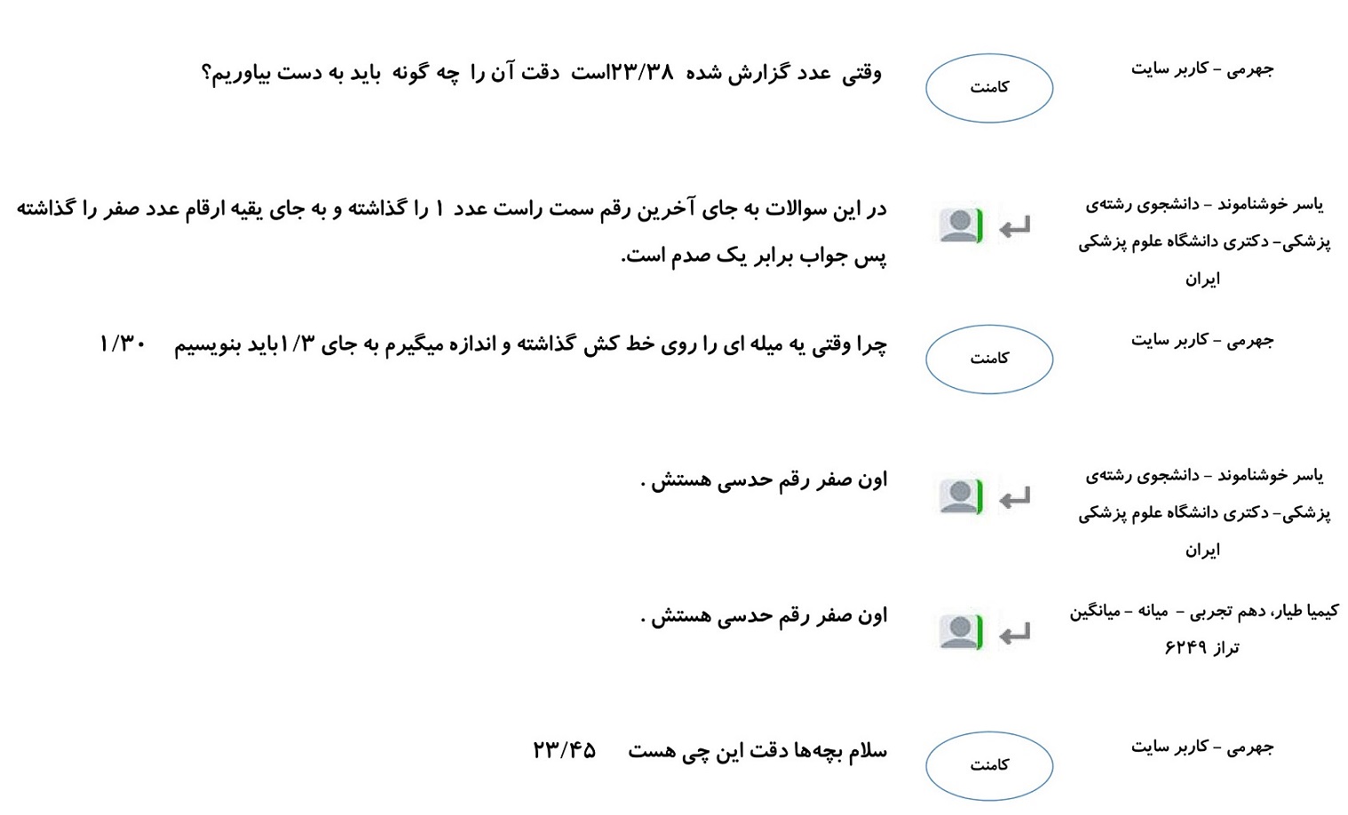 کامنتهای درسی منتخب (یک شنبه 12 اسفند)