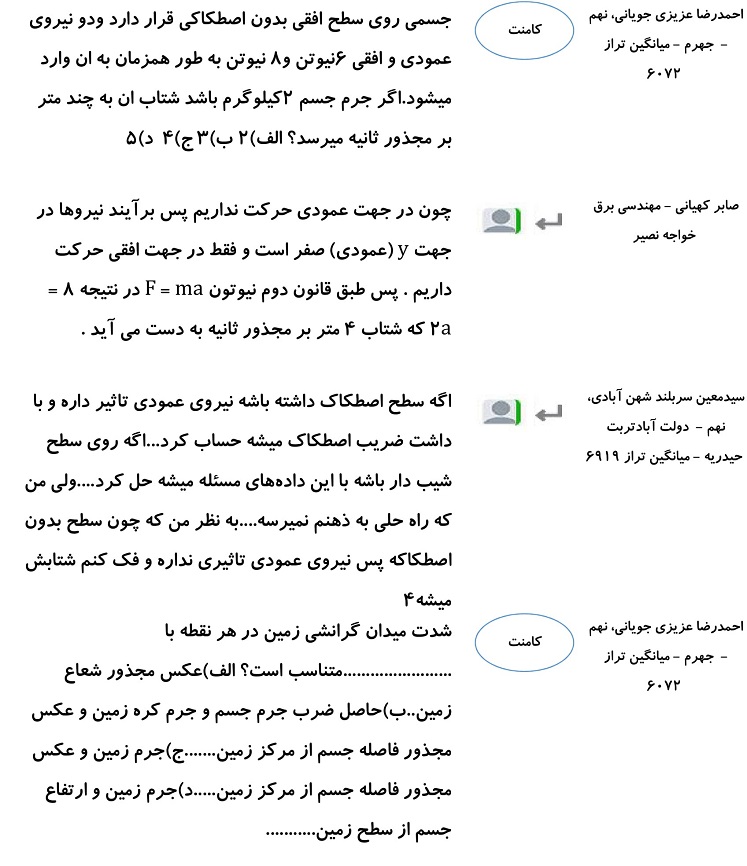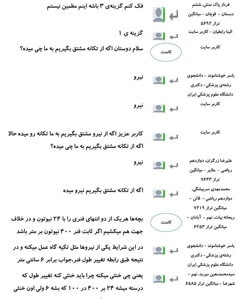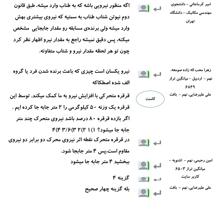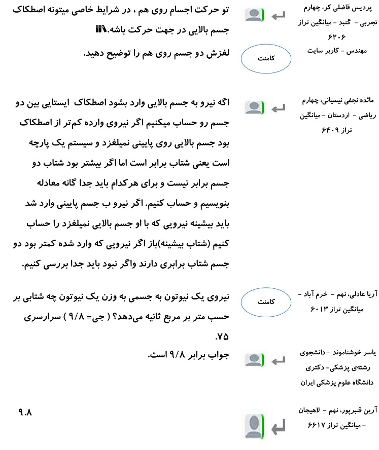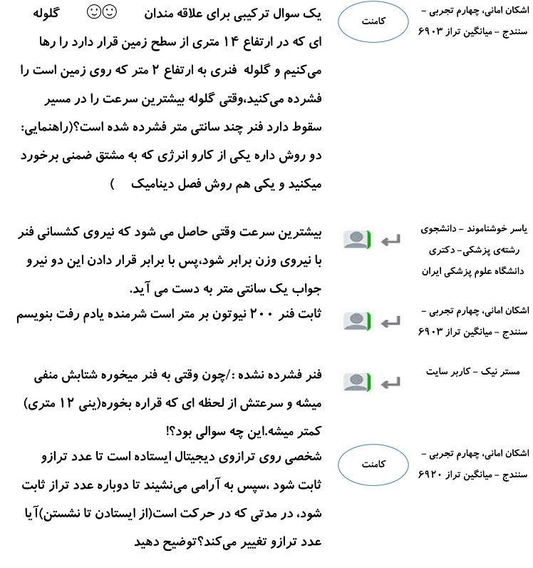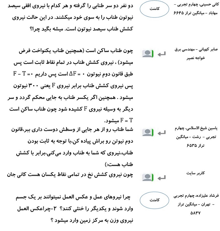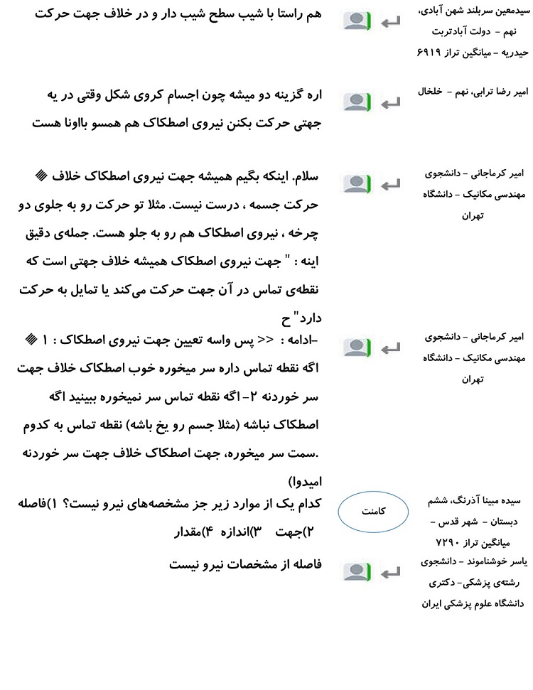 در این مطلب مجموعه پرسش و پاسخ های شما دانش آموزان در رابطه با مبحث دینامیک را گردآوری کرده ایم. امیدواریم خواندن این کامنت ها در درک بهتر این مبحث به شما کمک کند.