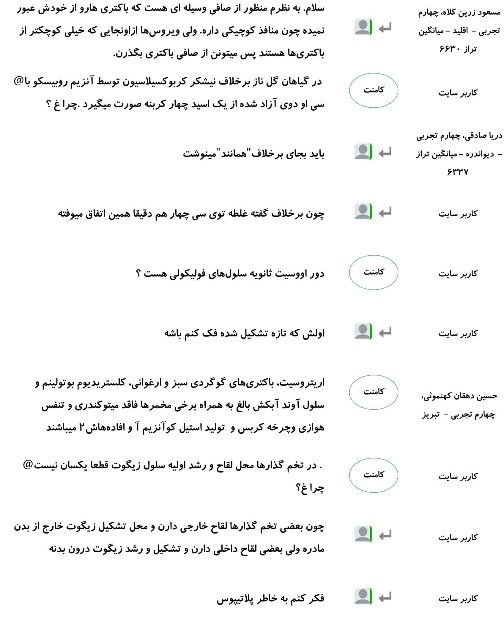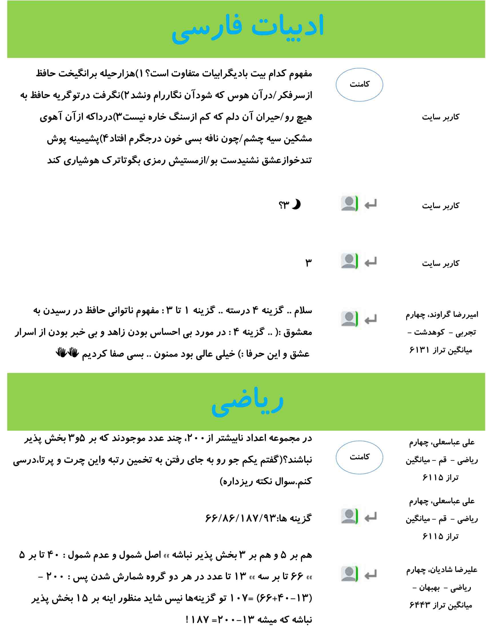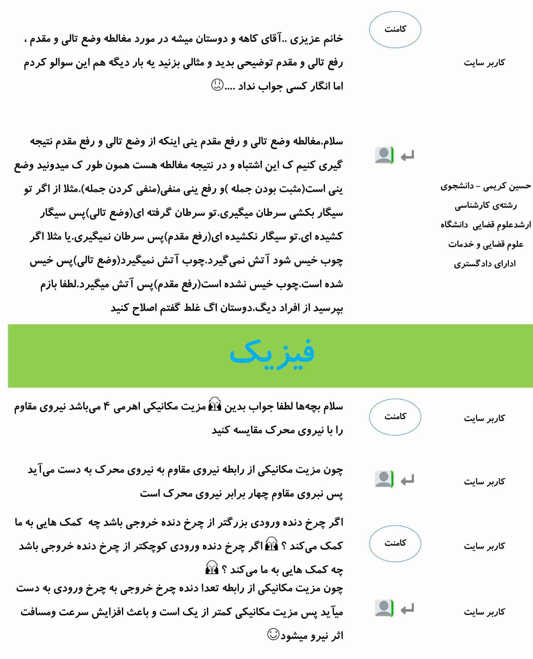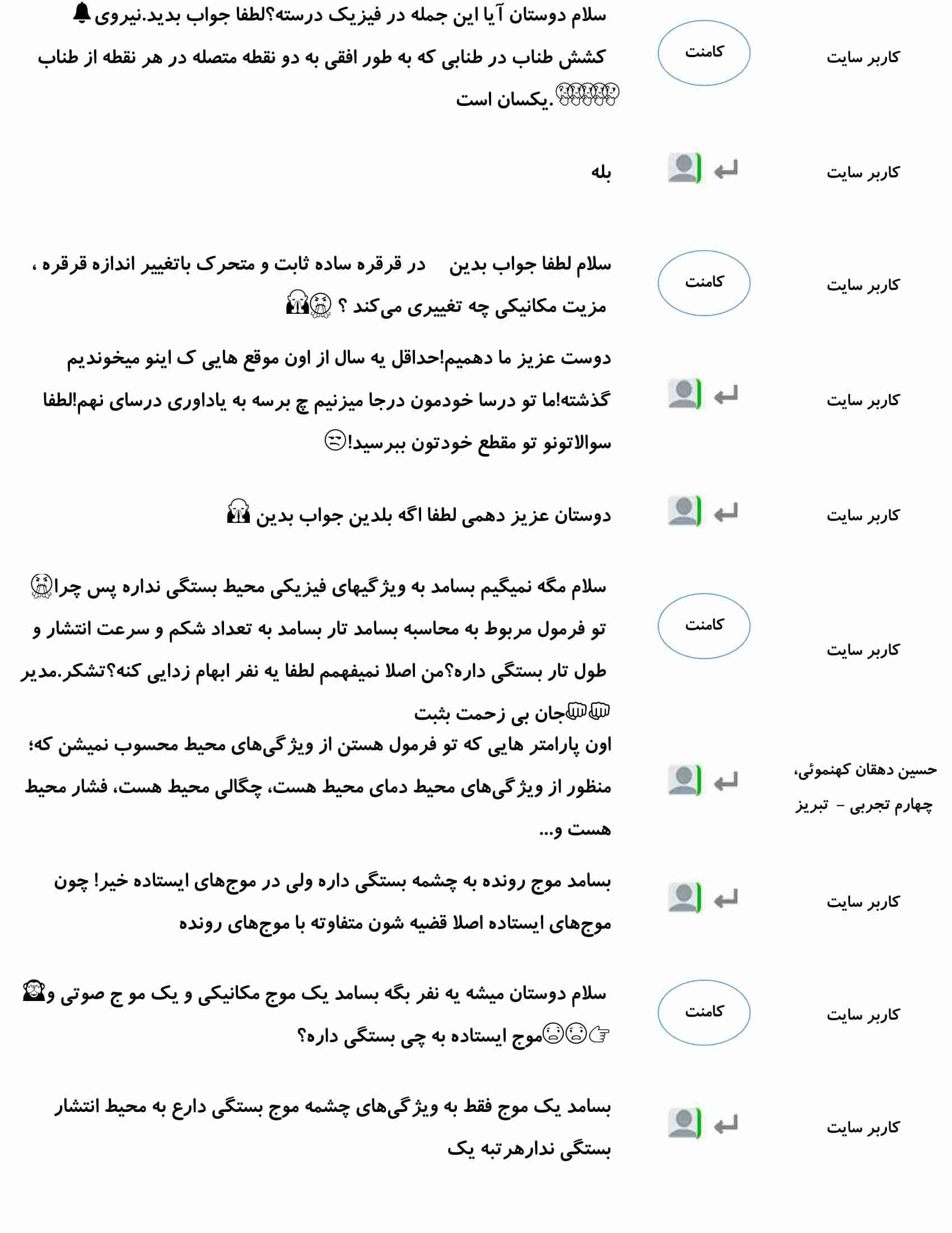 هر شب بهترین پرسش و پاسخ های درسی شما در میان کامنت های صفحات مقاطع، بر روی سایت قرار می گیرد.