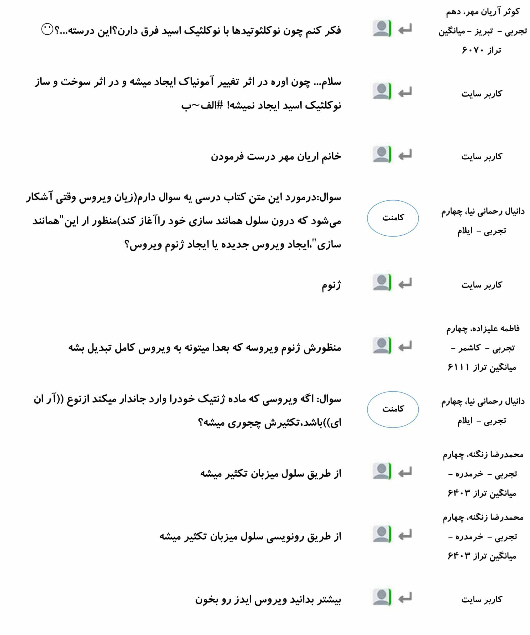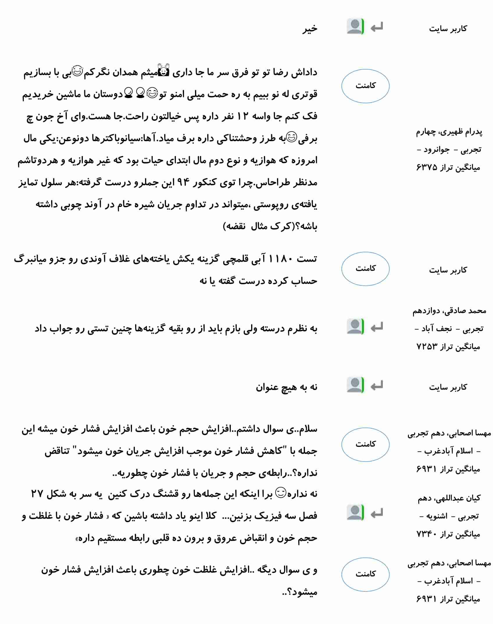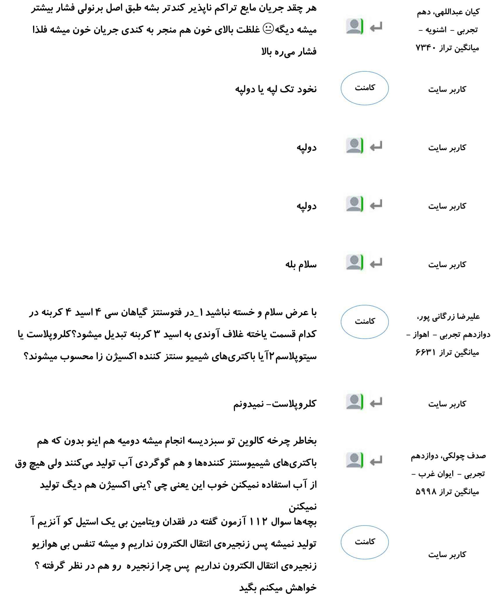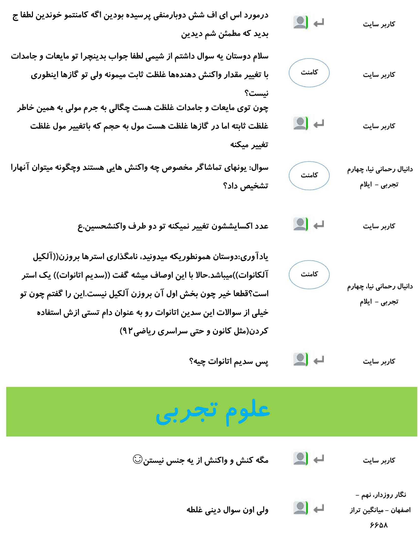 هر شب بهترین پرسش و پاسخ های درسی شما در میان کامنت های صفحات مقاطع، بر روی سایت قرار می گیرد.