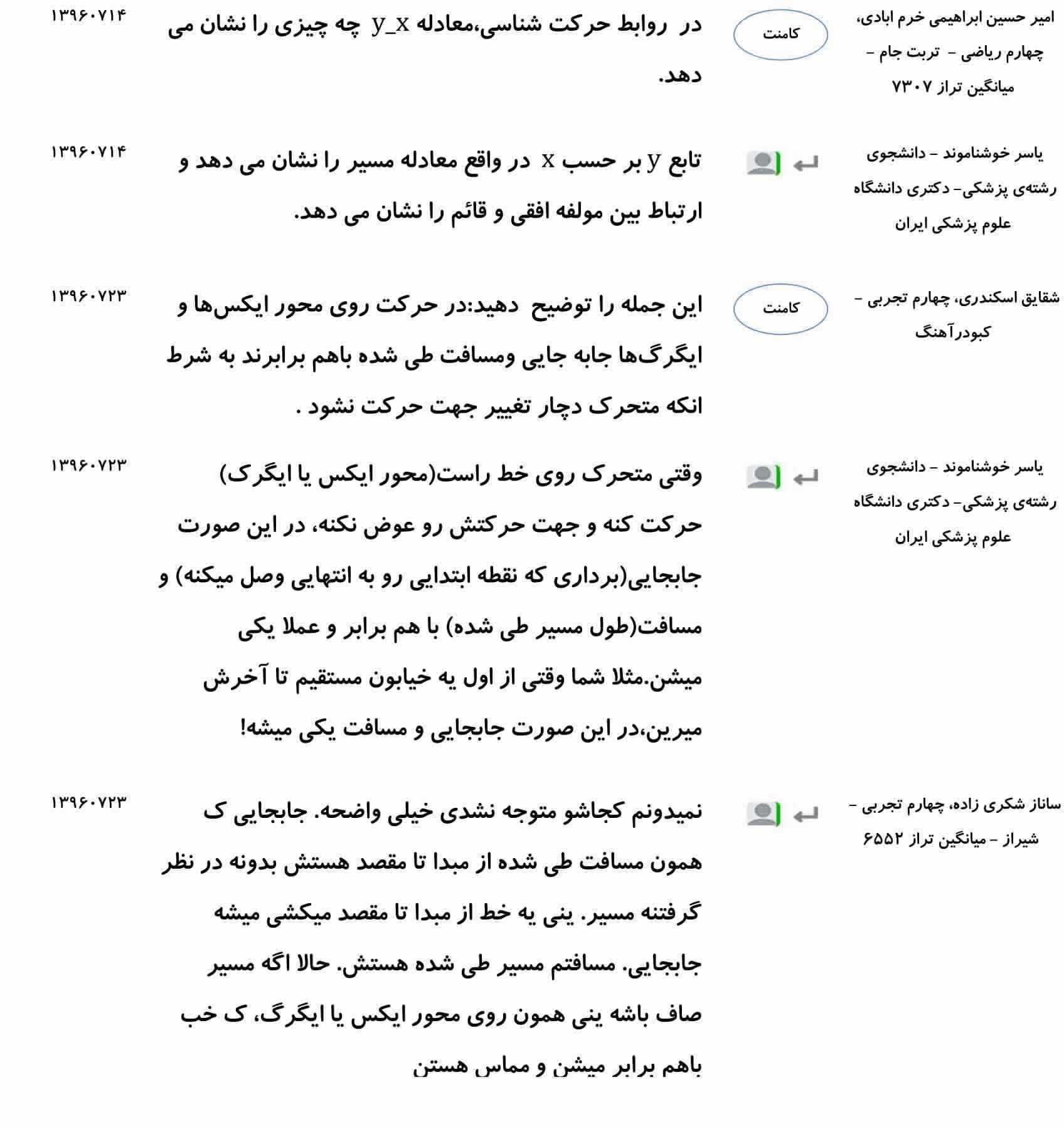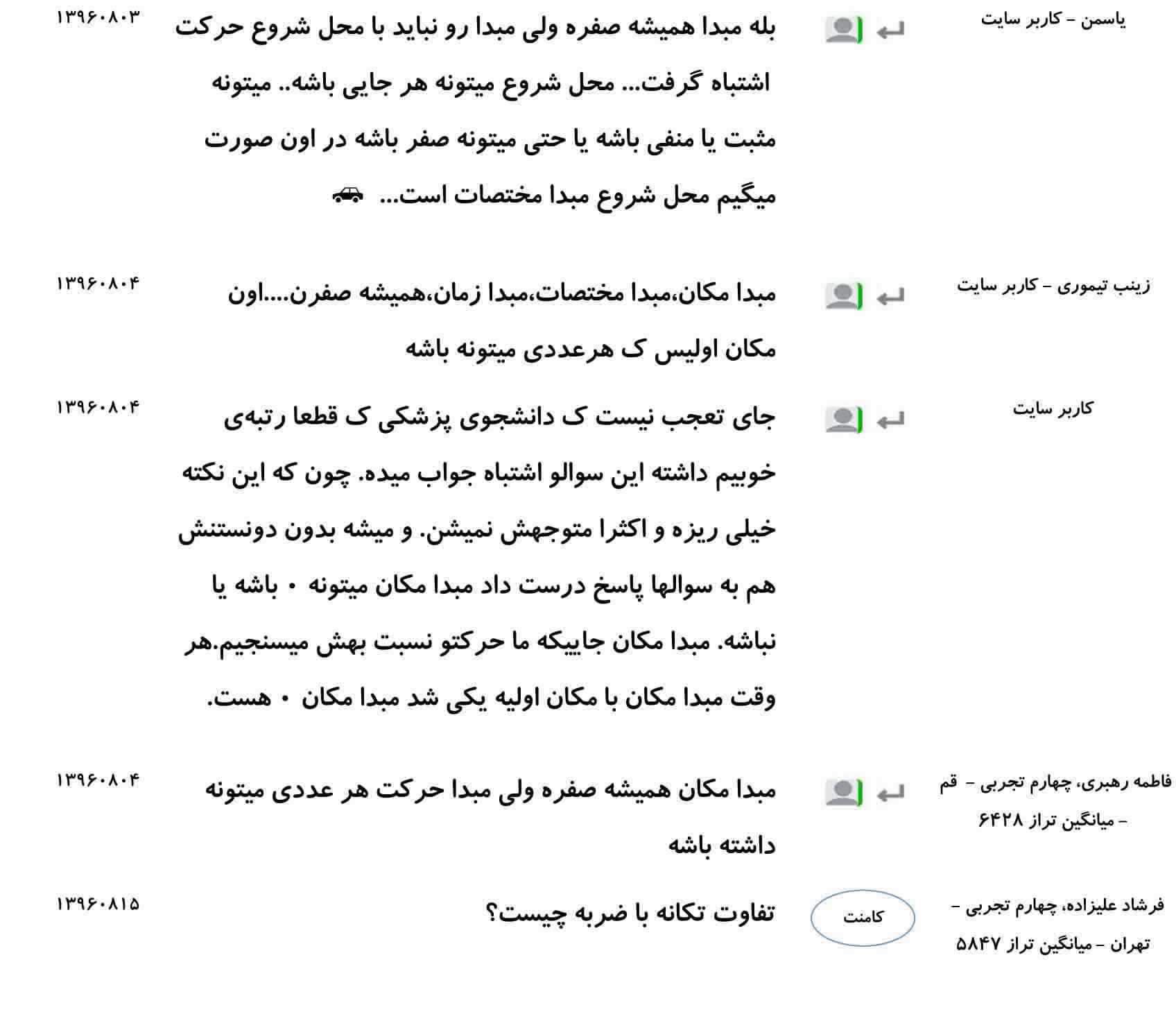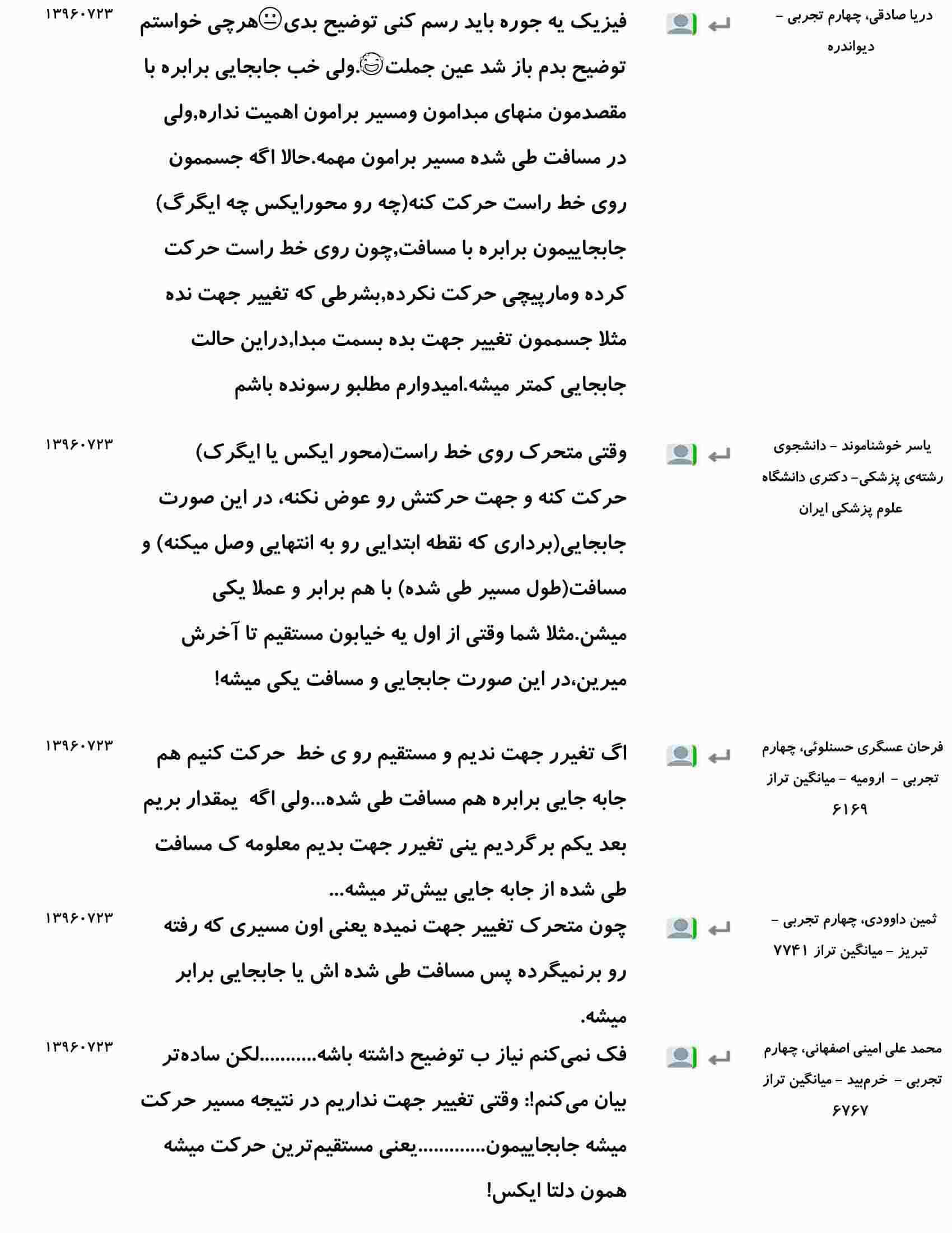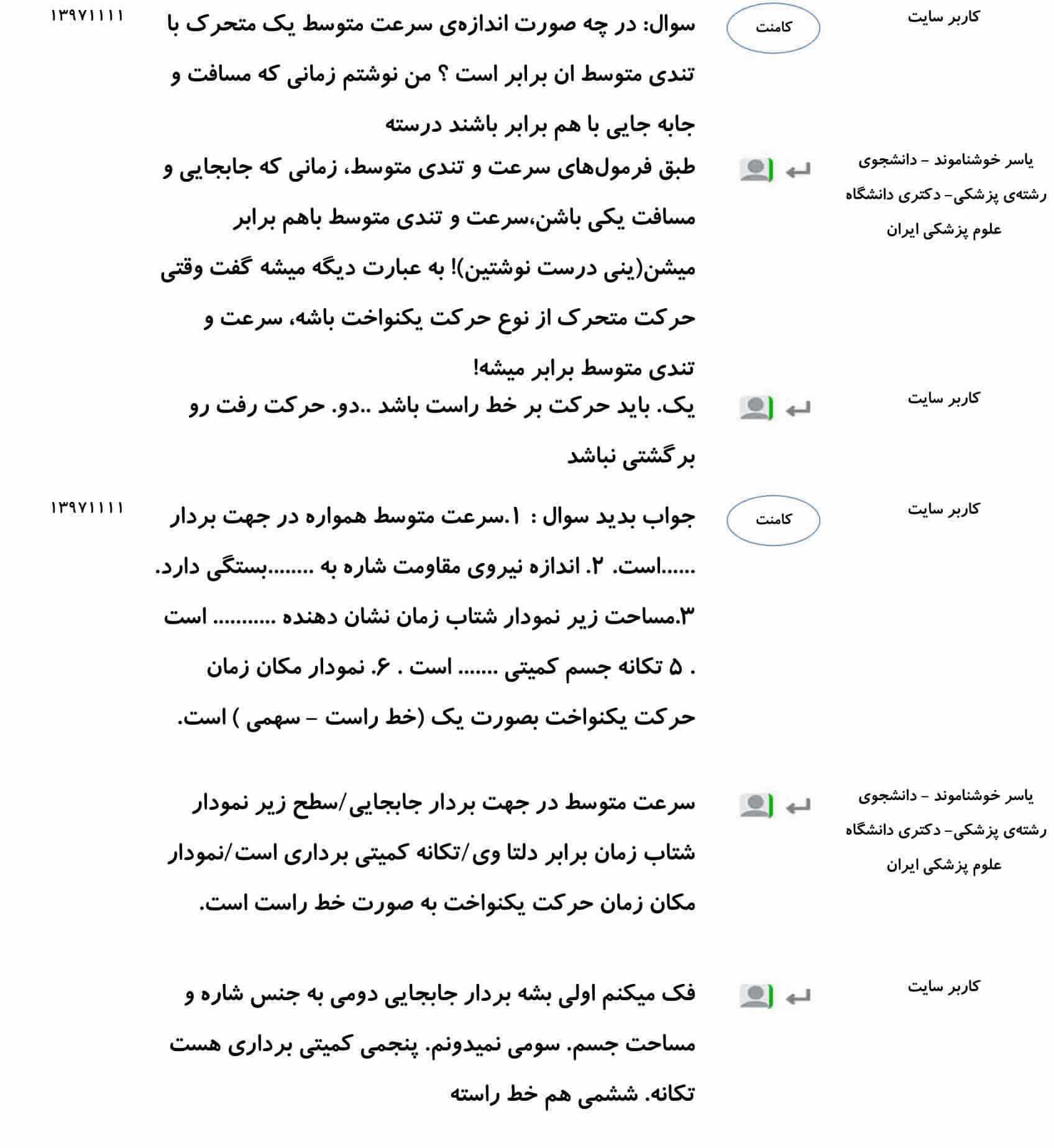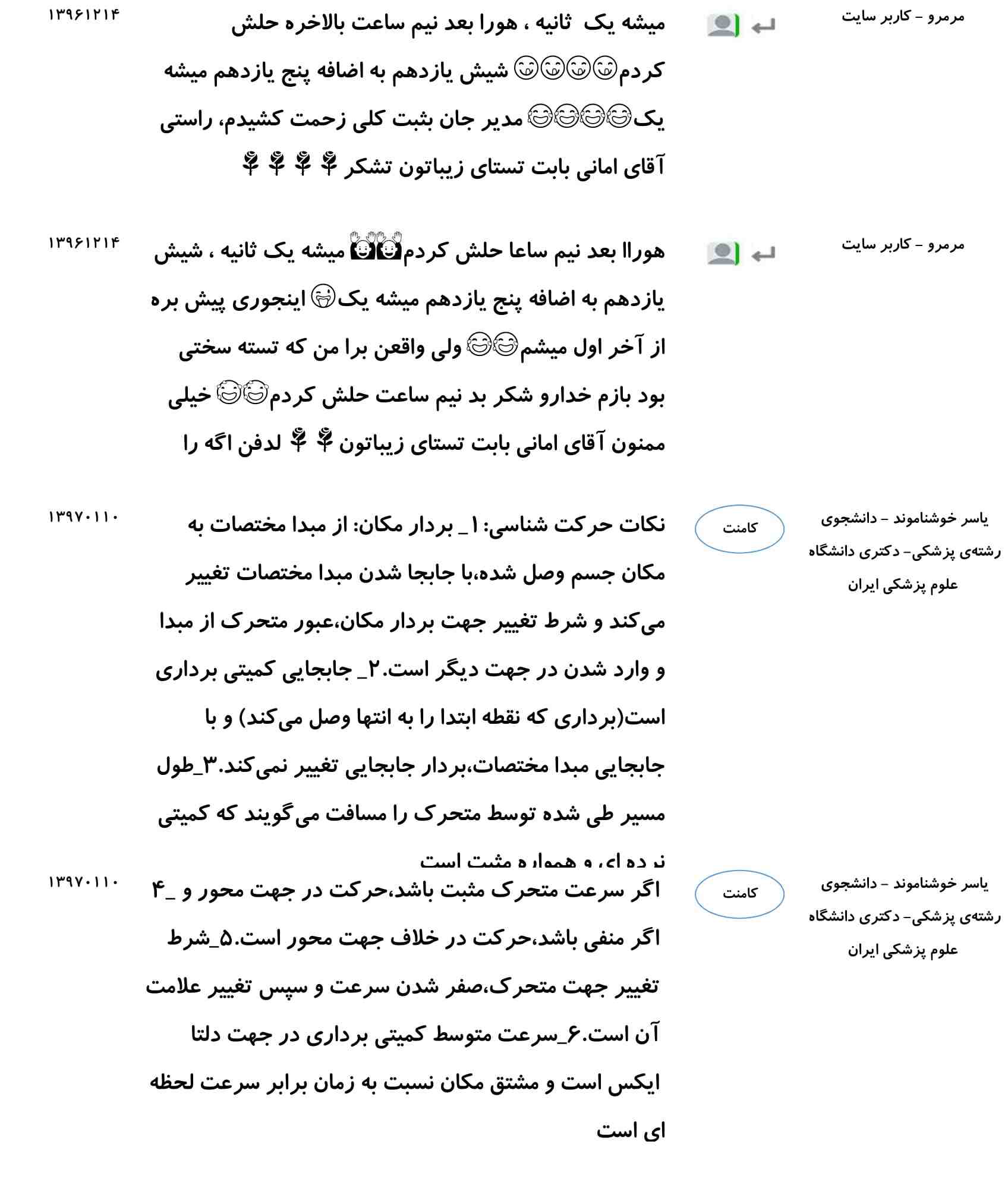 در این مطلب مجموعه پرسش و پاسخ های شما دانش آموزان در رابطه با مبحث حرکت شناسی را گردآوری کرده ایم. امیدواریم خواندن این کامنت ها در درک بهتر این مبحث به شما کمک کند.