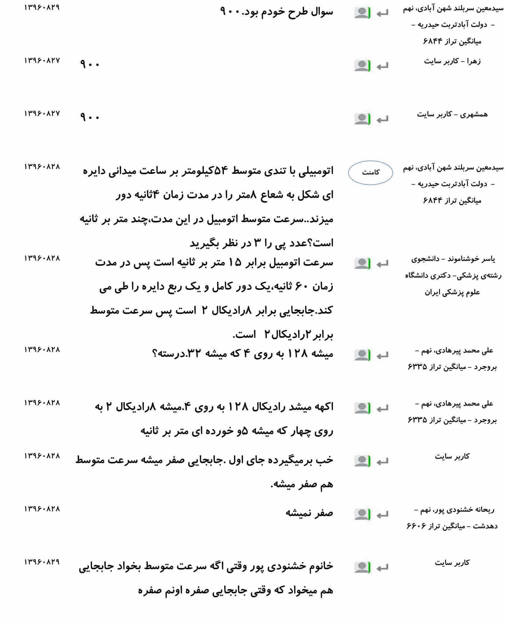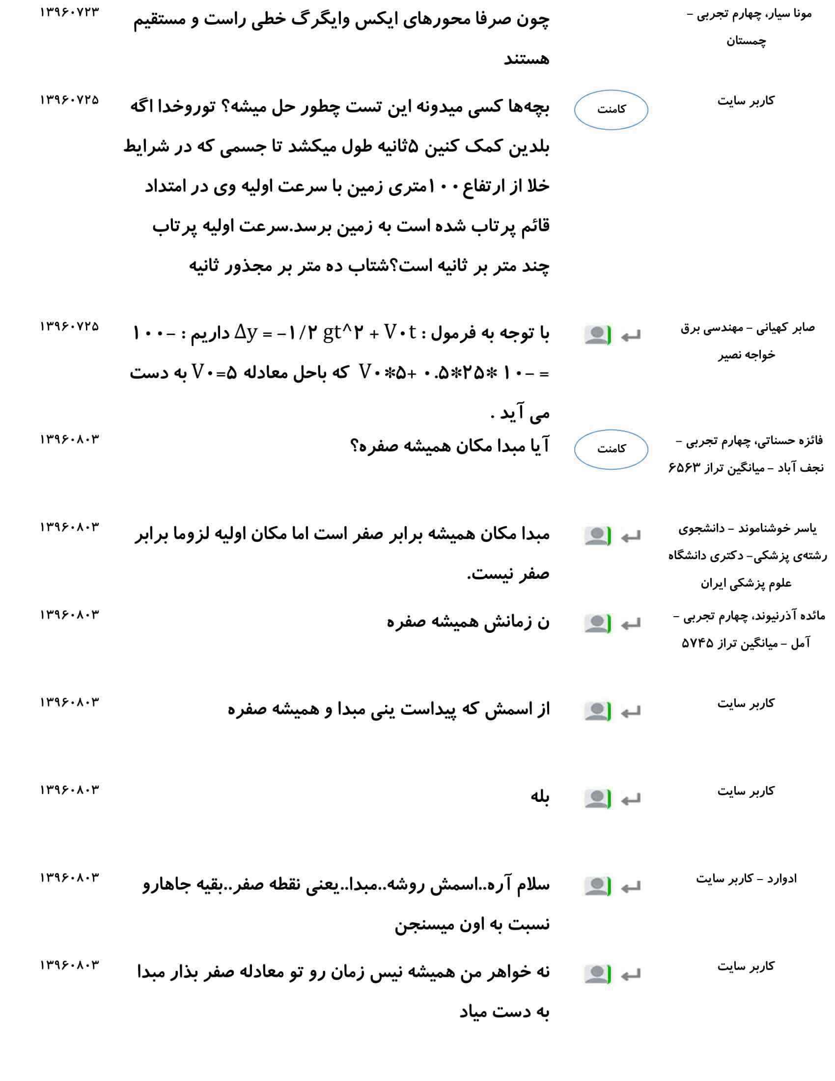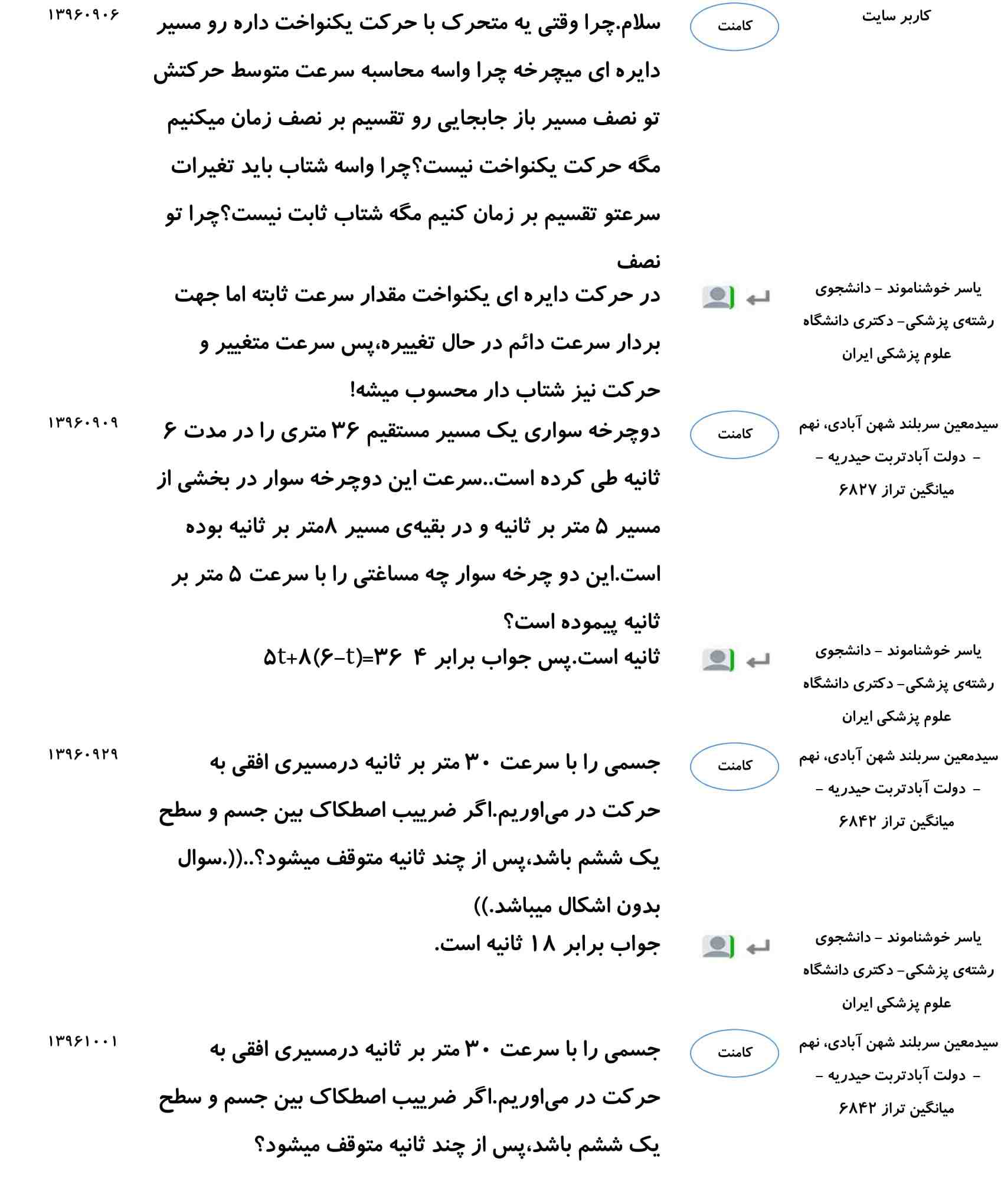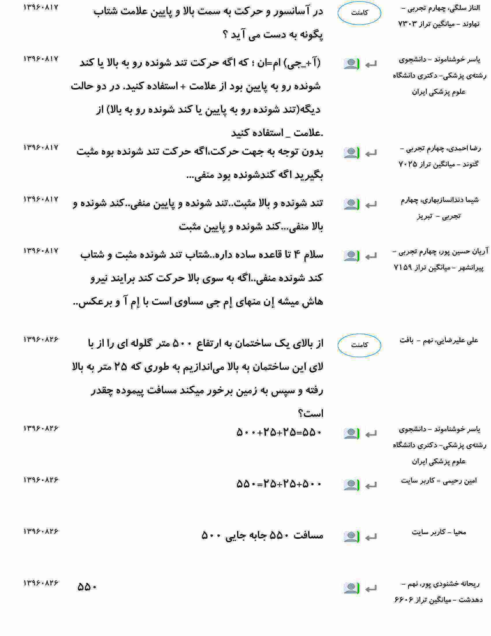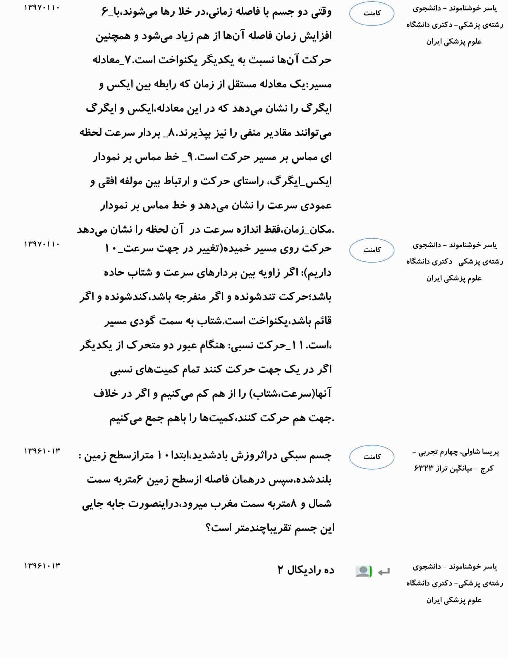 در این مطلب مجموعه پرسش و پاسخ های شما دانش آموزان در رابطه با مبحث حرکت شناسی را گردآوری کرده ایم. امیدواریم خواندن این کامنت ها در درک بهتر این مبحث به شما کمک کند.