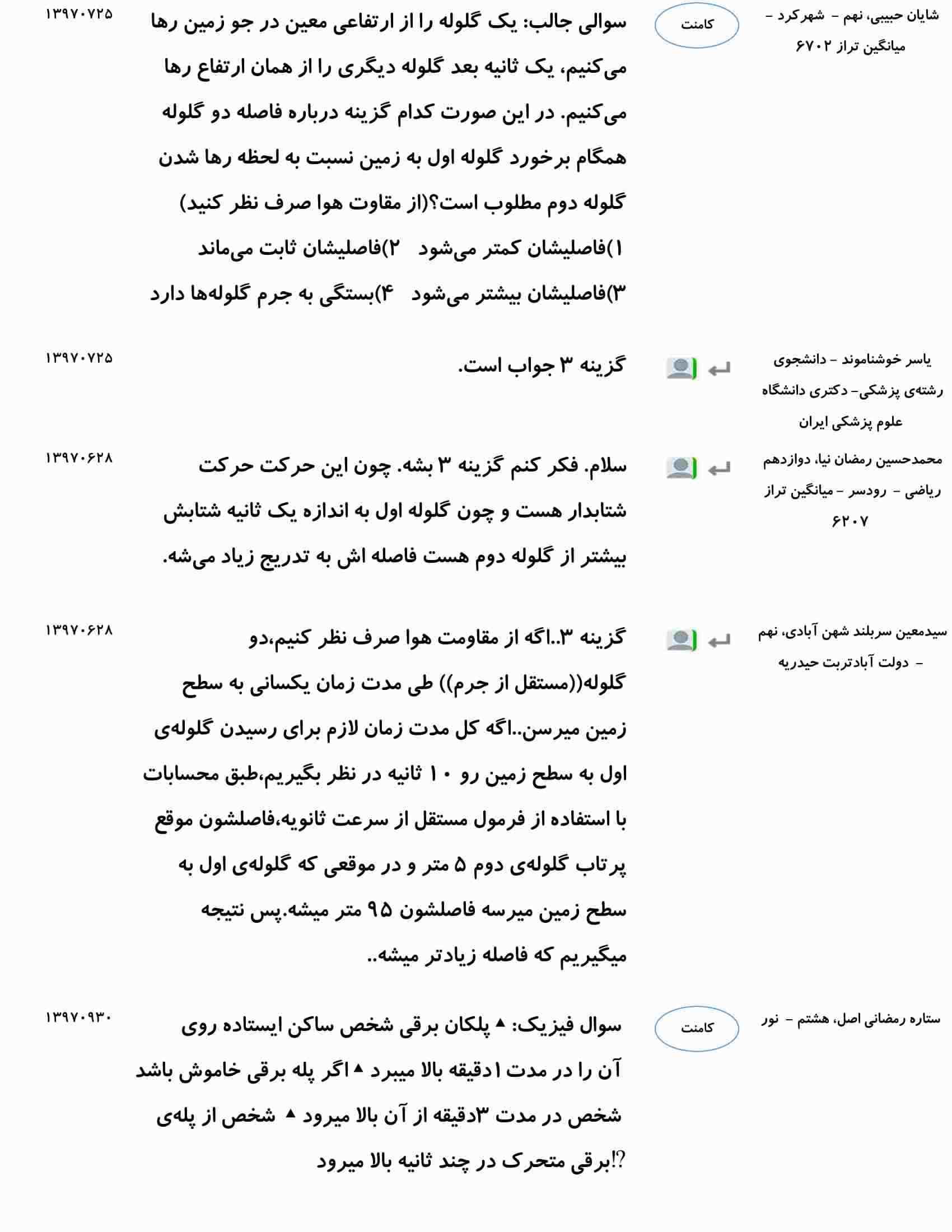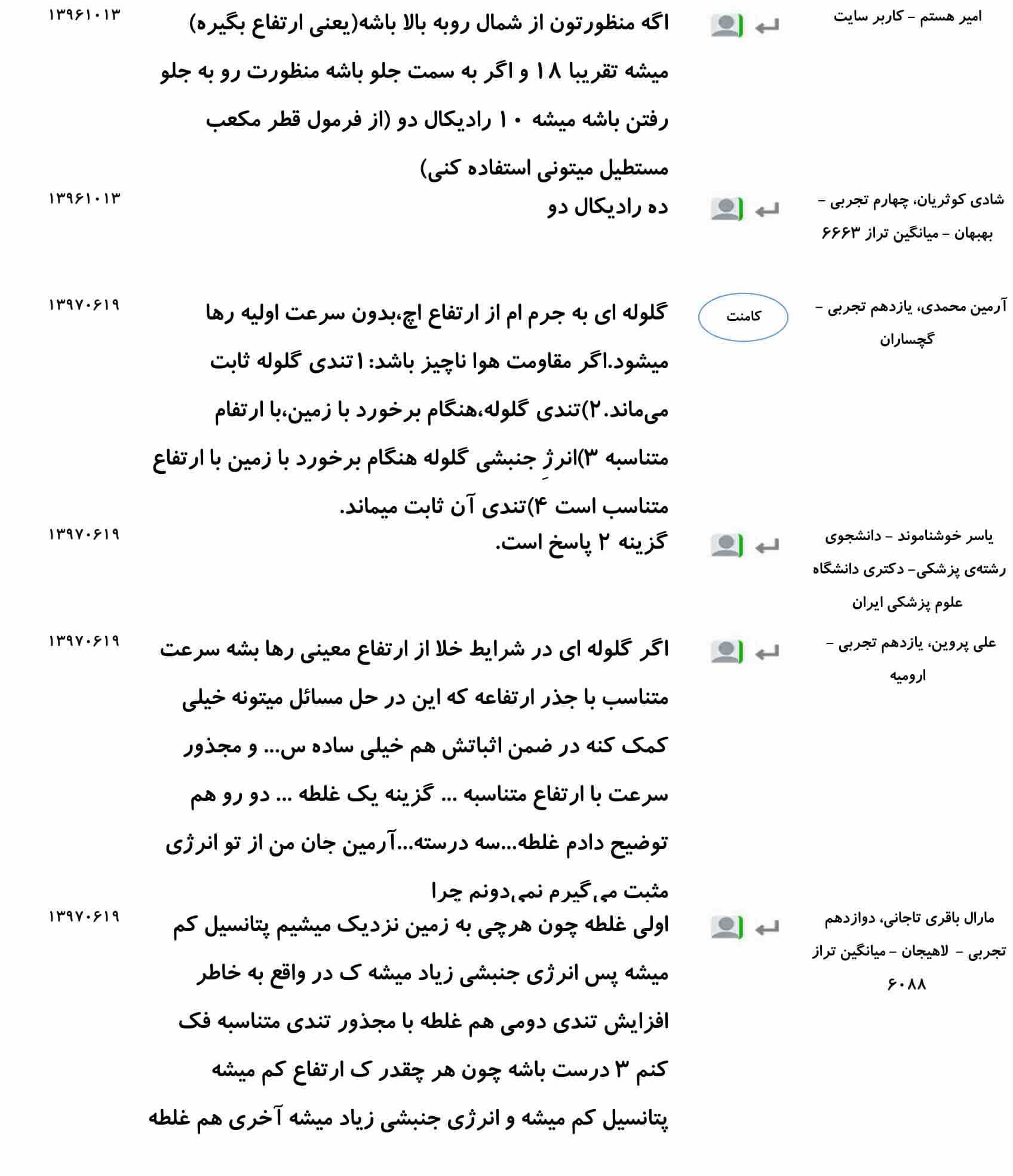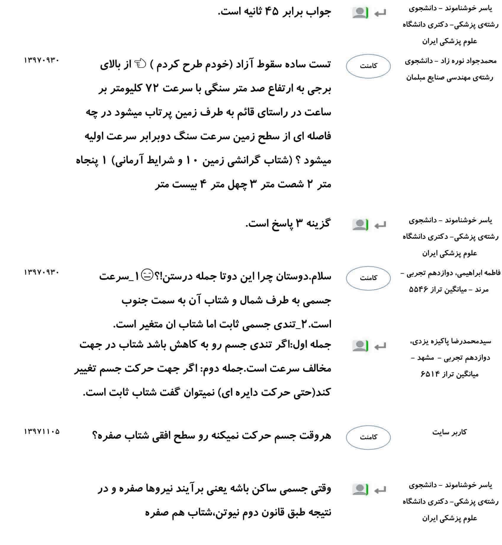 کامنتهای درسی منتخب (سه شنبه 14 اسفند)