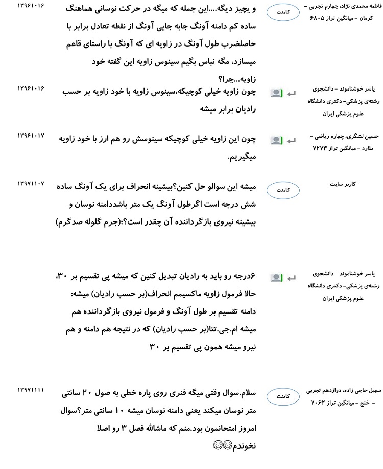 در این مطلب مجموعه پرسش و پاسخ های شما دانش آموزان در رابطه با مبحث نوسان را گردآوری کرده ایم. امیدواریم خواندن این کامنت ها در درک بهتر این مبحث به شما کمک کند.