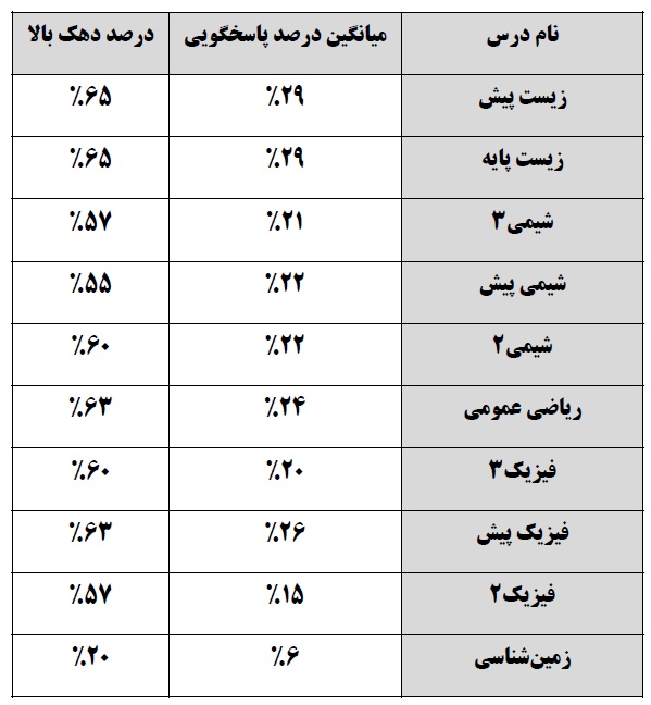 کنکوریهای عزیز رشته تجربیسلامآمارهای بعد از برگزاری آزمون فارغ التحصیل بدین شرح است:درس ریاضی در این آزمون آسان بوده است.فیریک 2 دشوار بوده است.بقیه درس ها سطح دشواری متعادلی داشته اند.َ