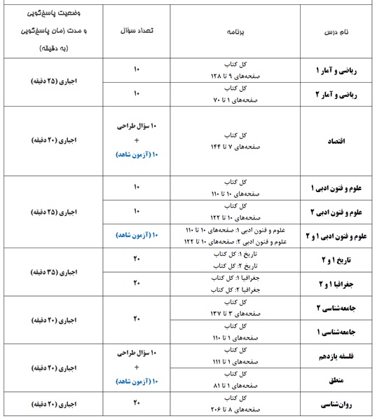 آنچه باید در مورد آزمون 7فروردین گروه دوازدهم انسانی بدانیم: