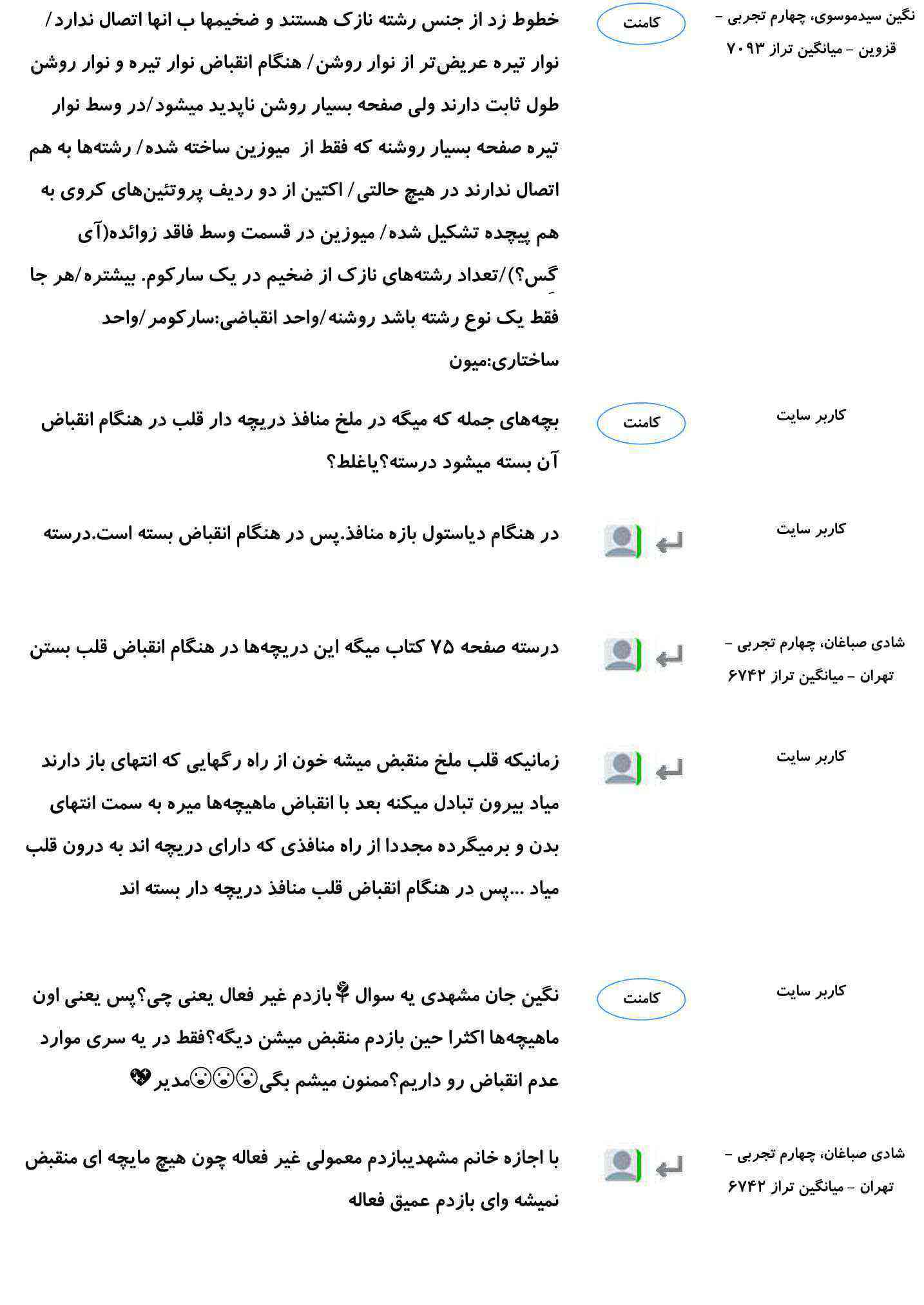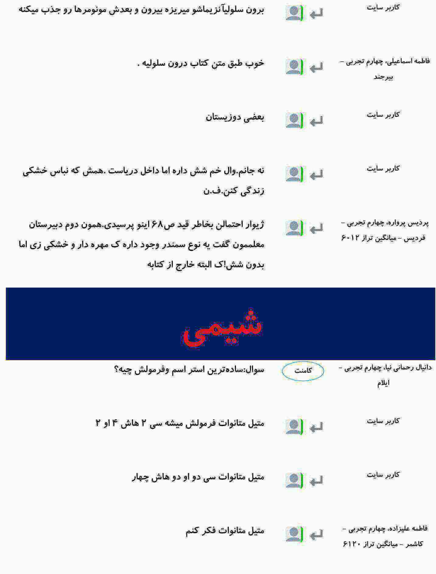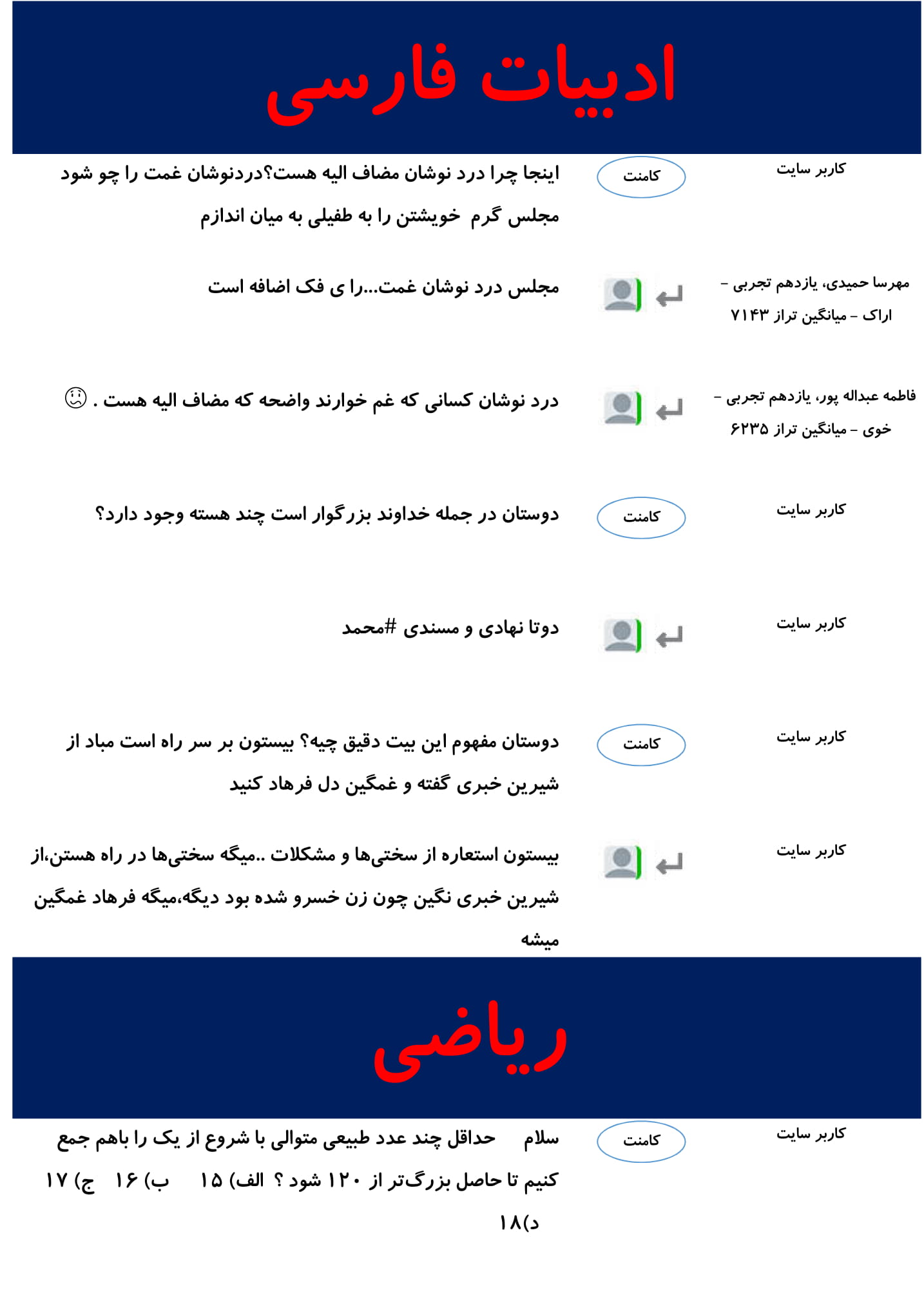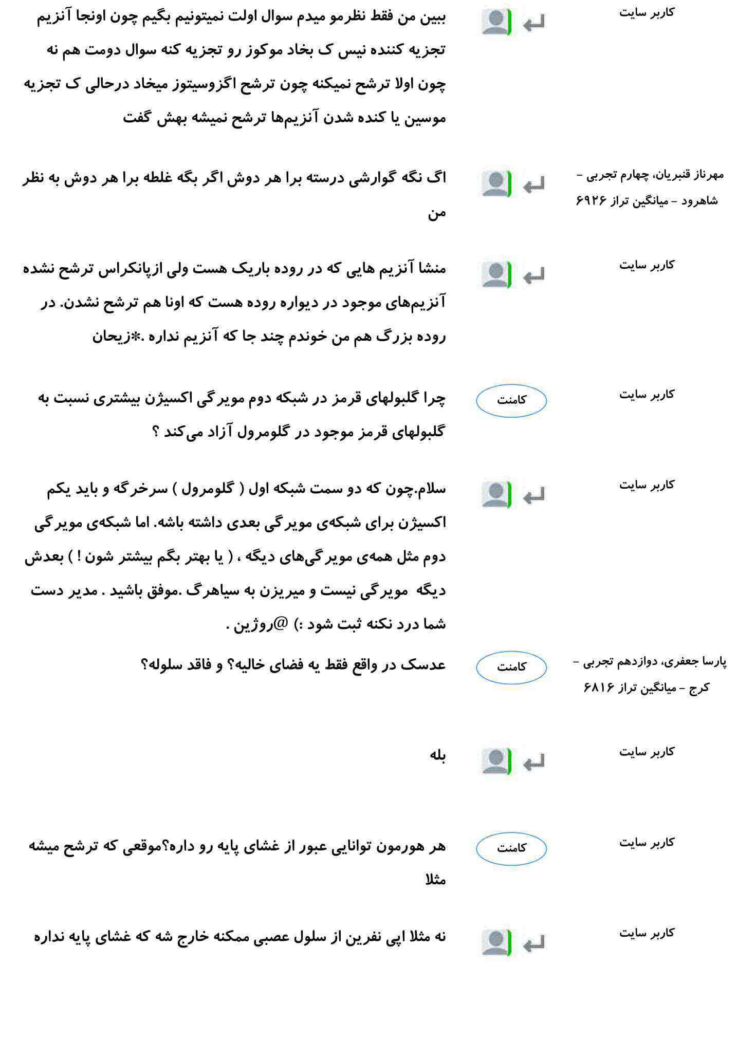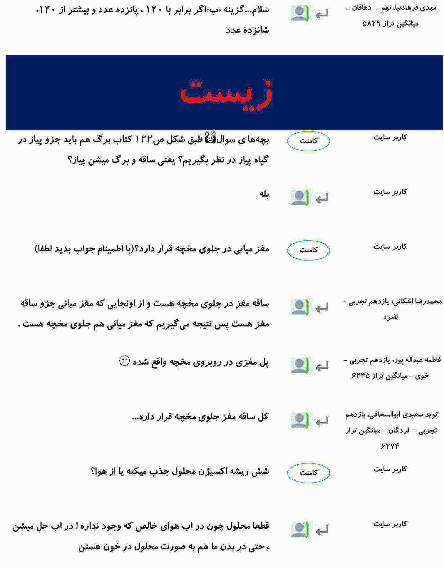 هر شب بهترین پرسش و پاسخ های درسی شما در میان کامنت های صفحات مقاطع، بر روی سایت قرار می گیرد.
