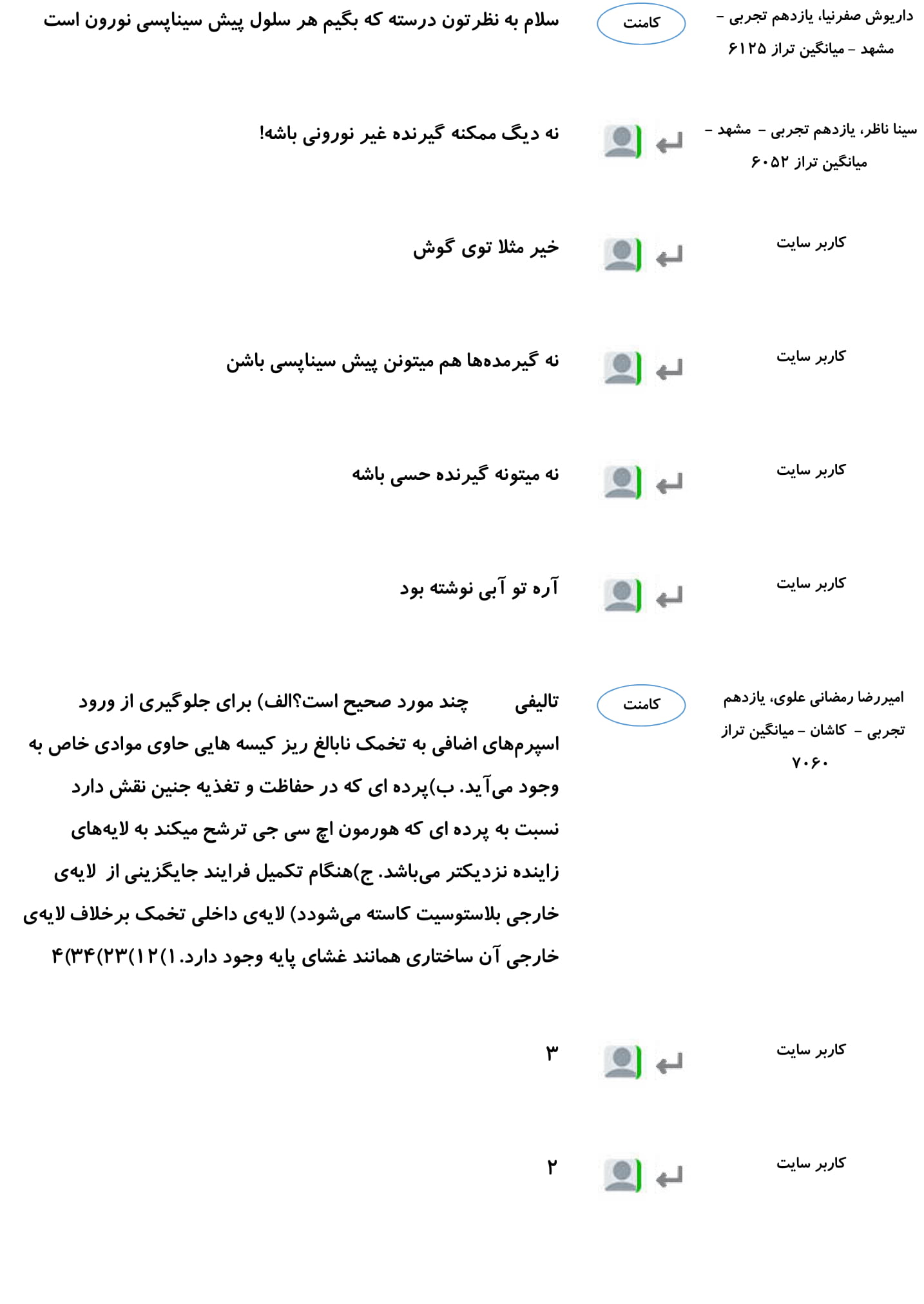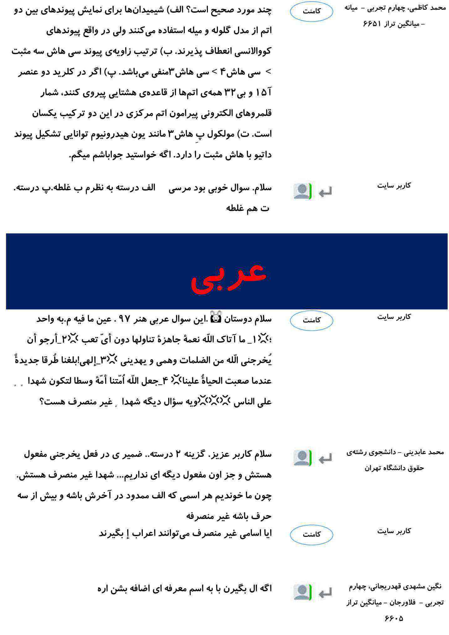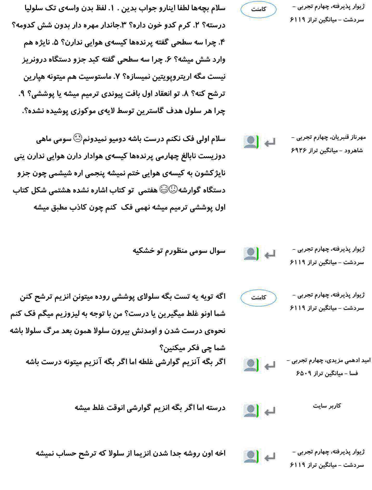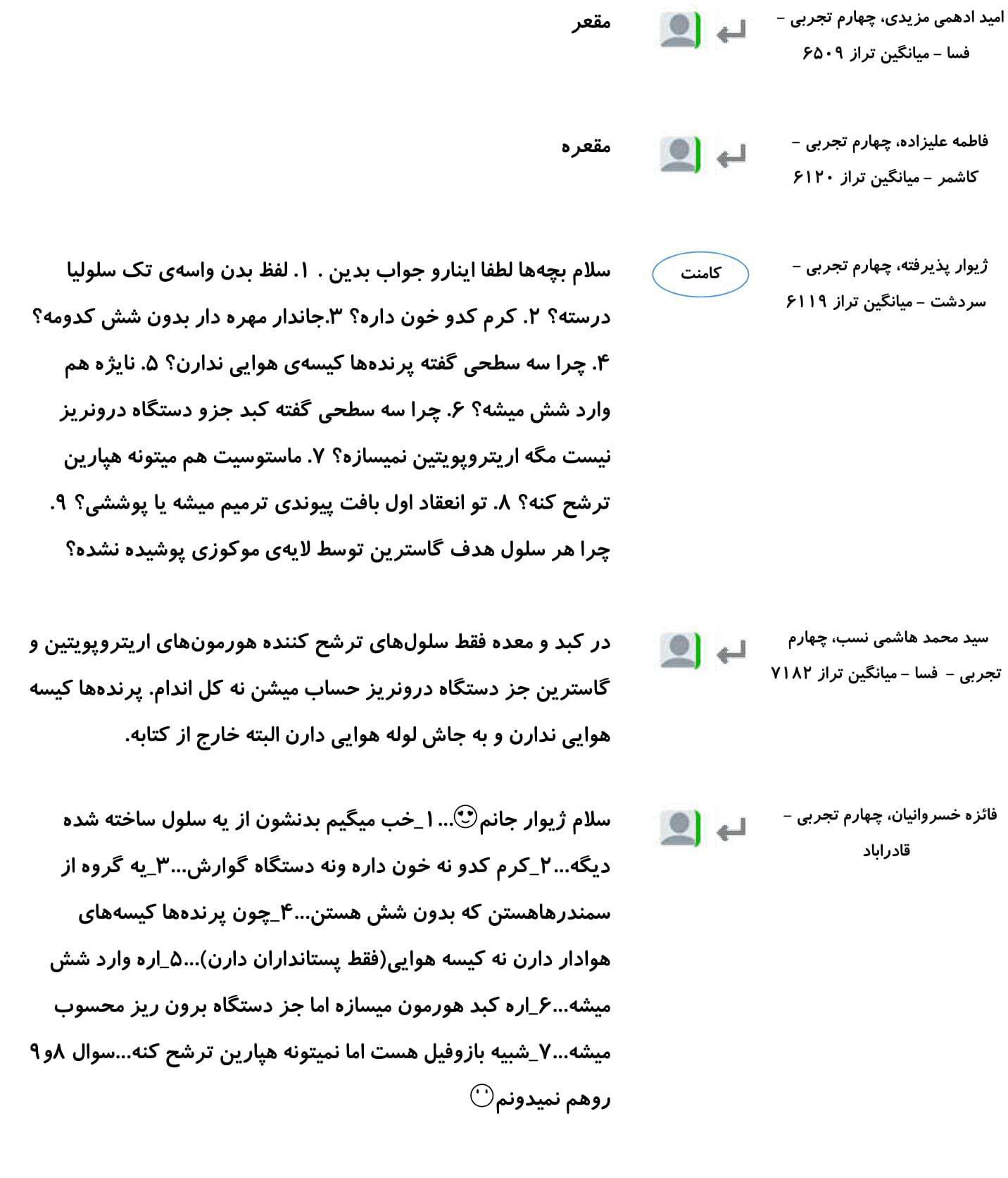 کامنتهای درسی منتخب (پنج شنبه 23 اسفند)