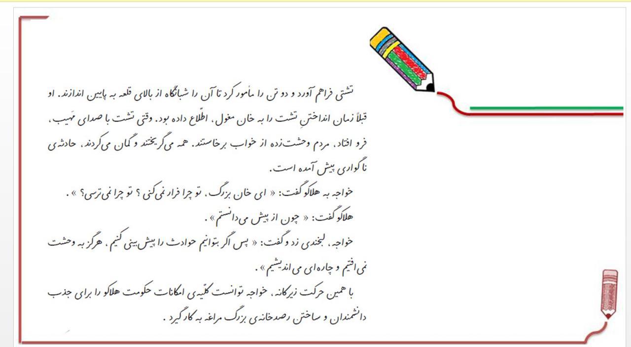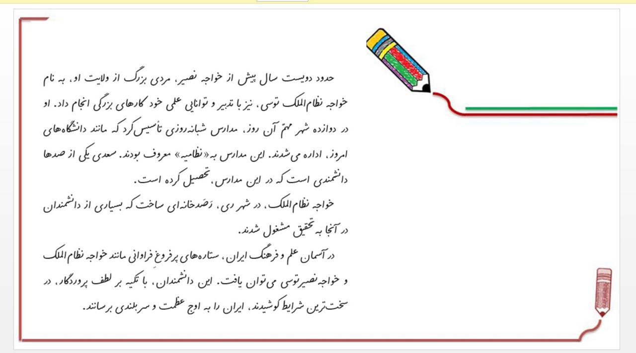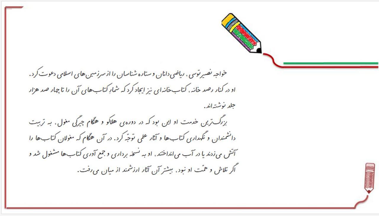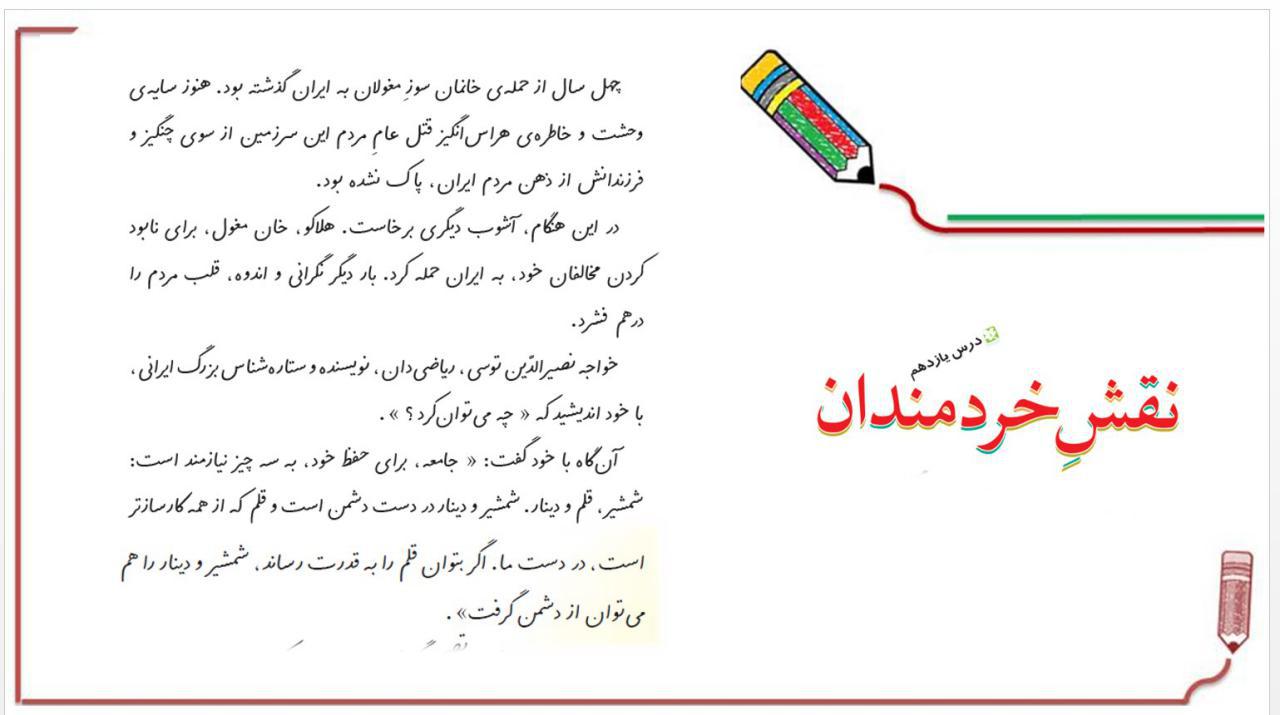 درسنامهی درس نقش خردمندان پنجم دبستان آماده شده است.