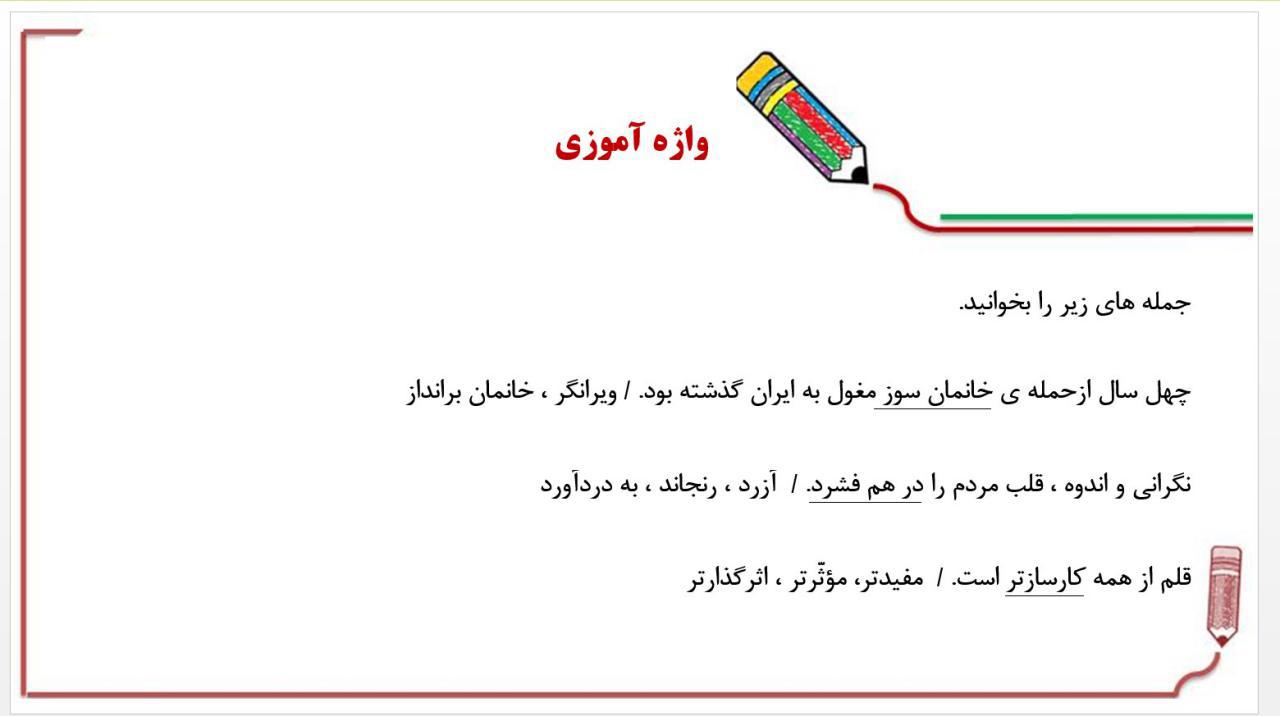درسنامهی فارسی درس نقش خردمندان ویژه آزمون 9 اسفند