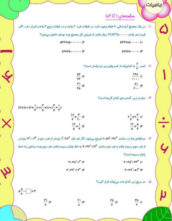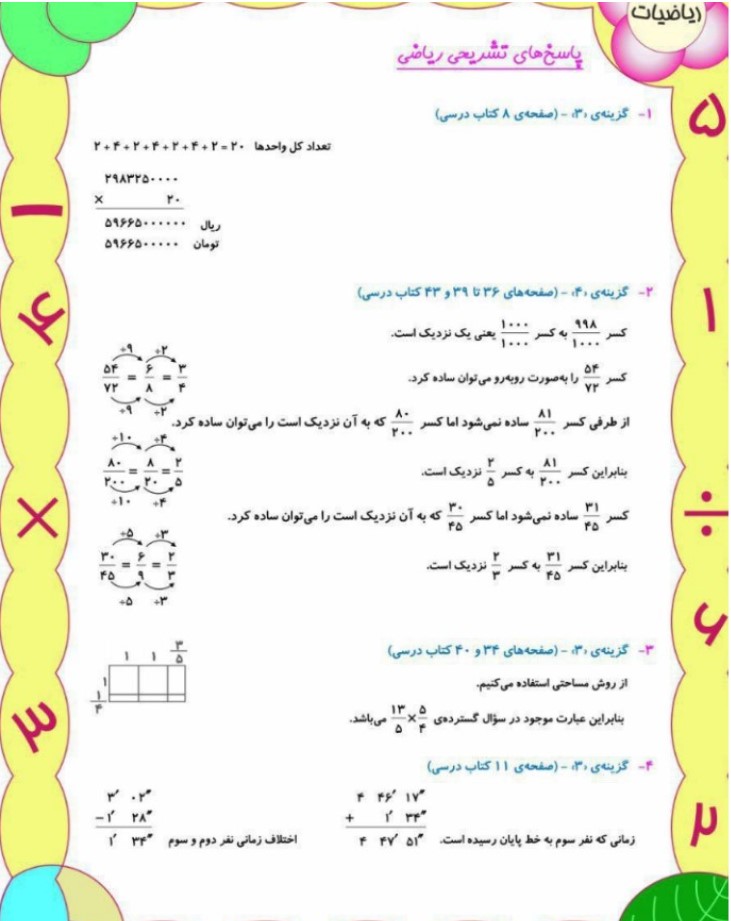 تمرینهای ویژه ریاضی برای آمادگی آزمون 15 فروردین_پنجم دبستان