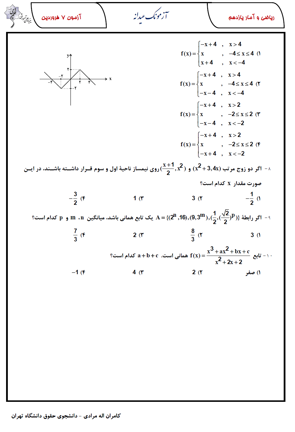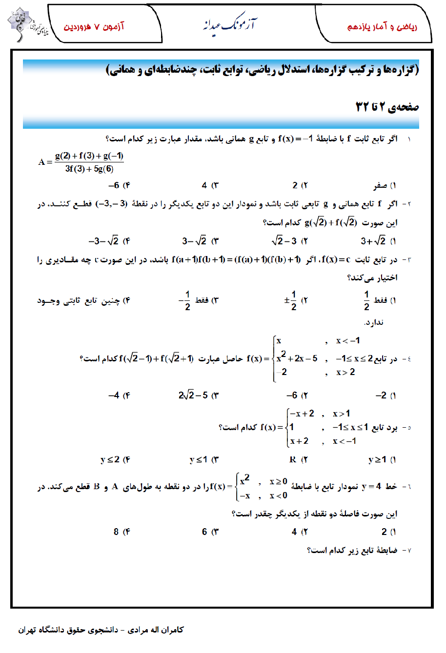 آزمونک ریاضی و آمار یازدهم انسانی (صفحات 2 تا 33)