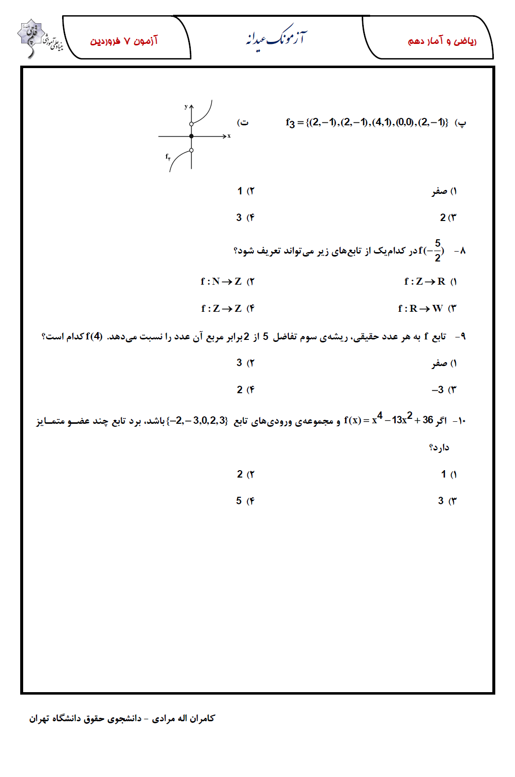 آزمونک ده سوالی ریاضی و آمار یازدهم انسانی