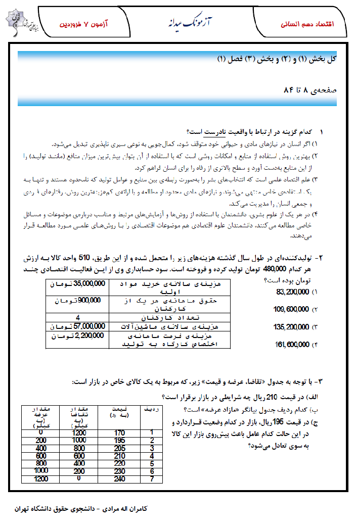 آزمونک ده سوالی اقتصاد (صفحات 1 تا 84)