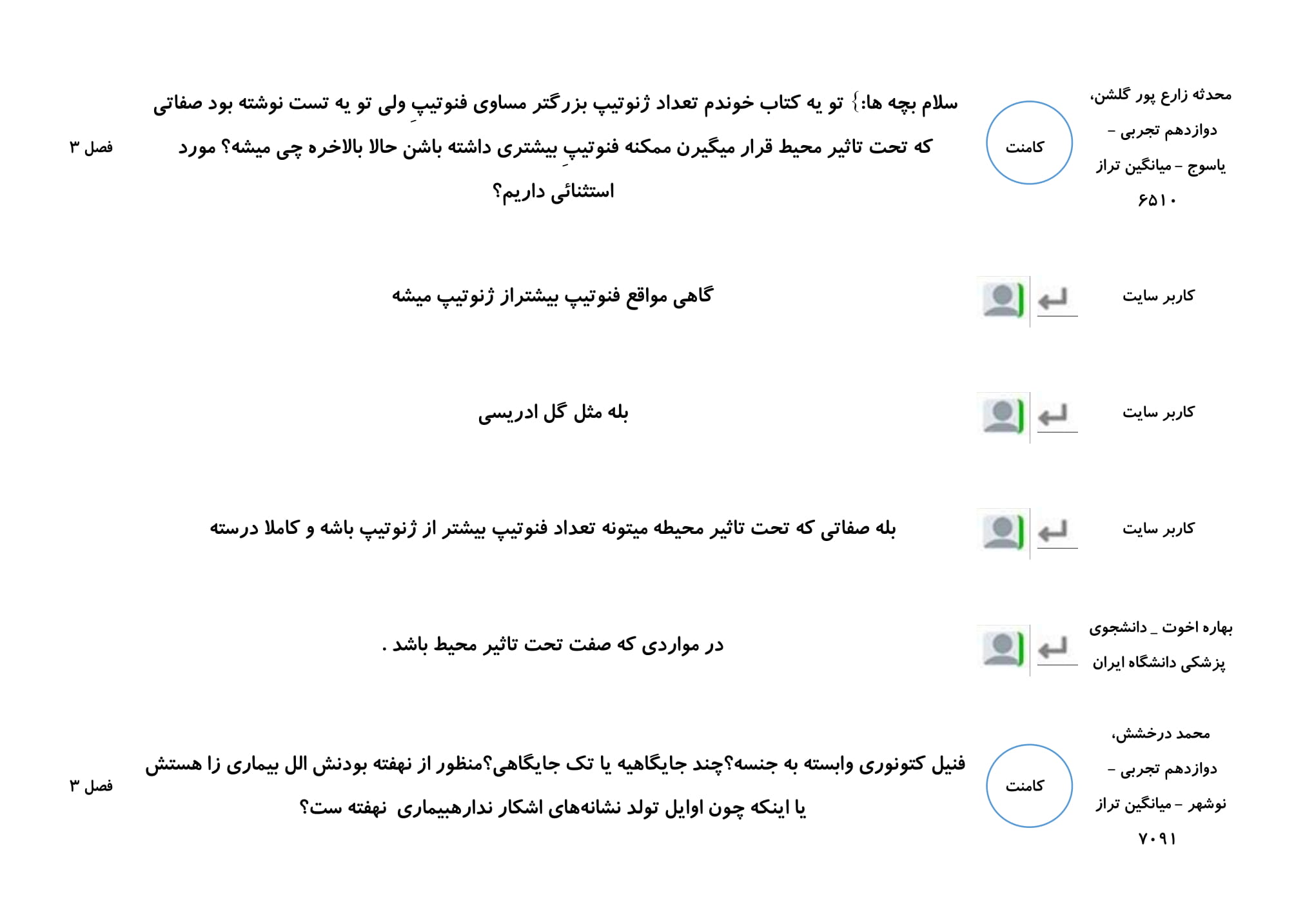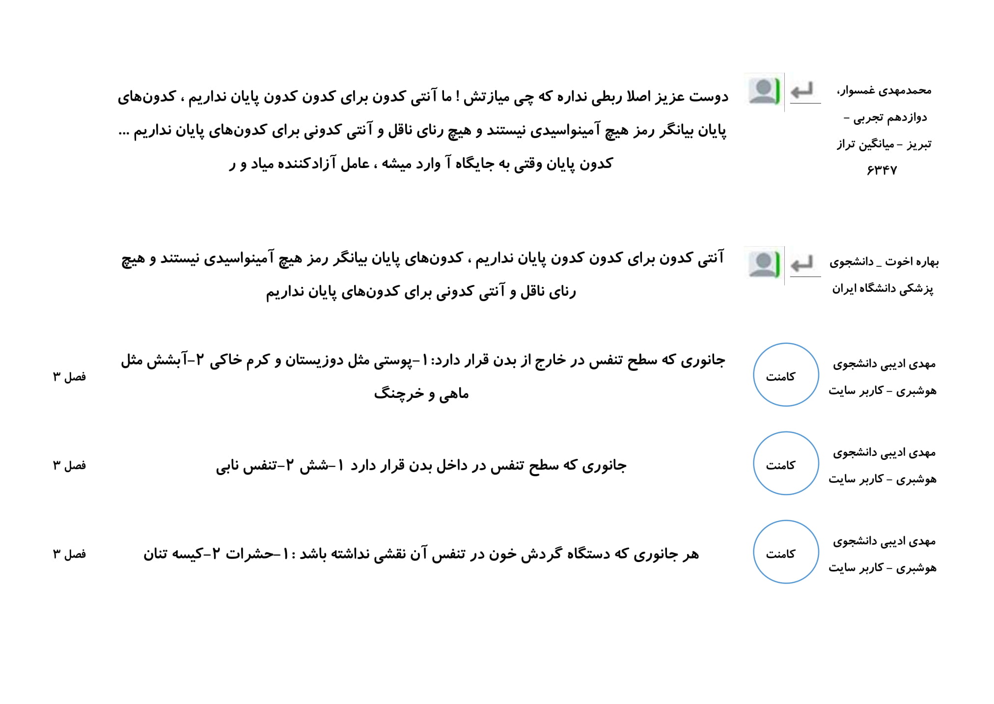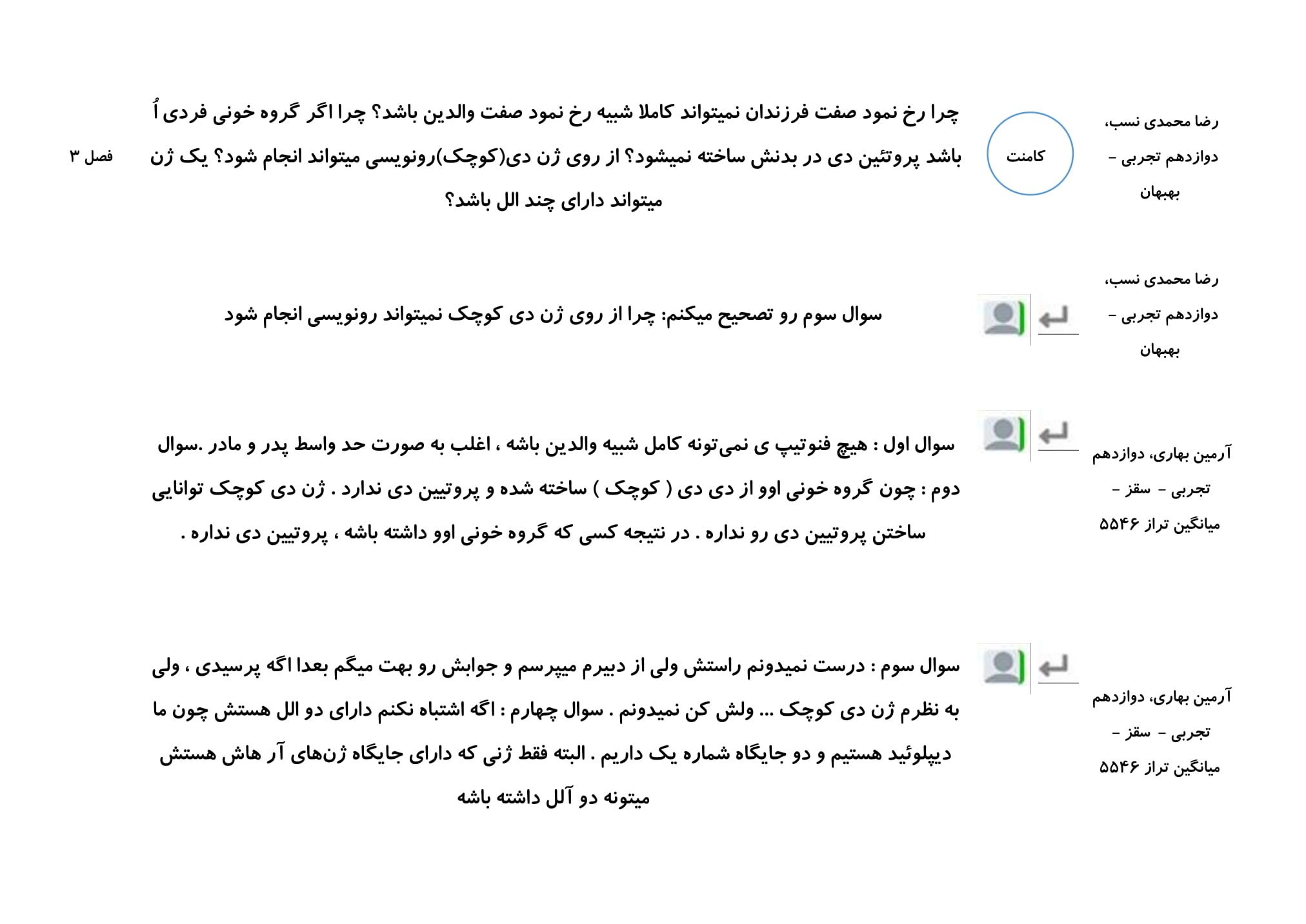 در این مطلب مجموعه پرسش و پاسخ های شما دانش آموزان در رابطه با فصل دوم و سوم زیست دوازدهم را گردآوری کرده ایم. امیدواریم خواندن این کامنت ها در درک بهتر این فصل به شما کمک کند.