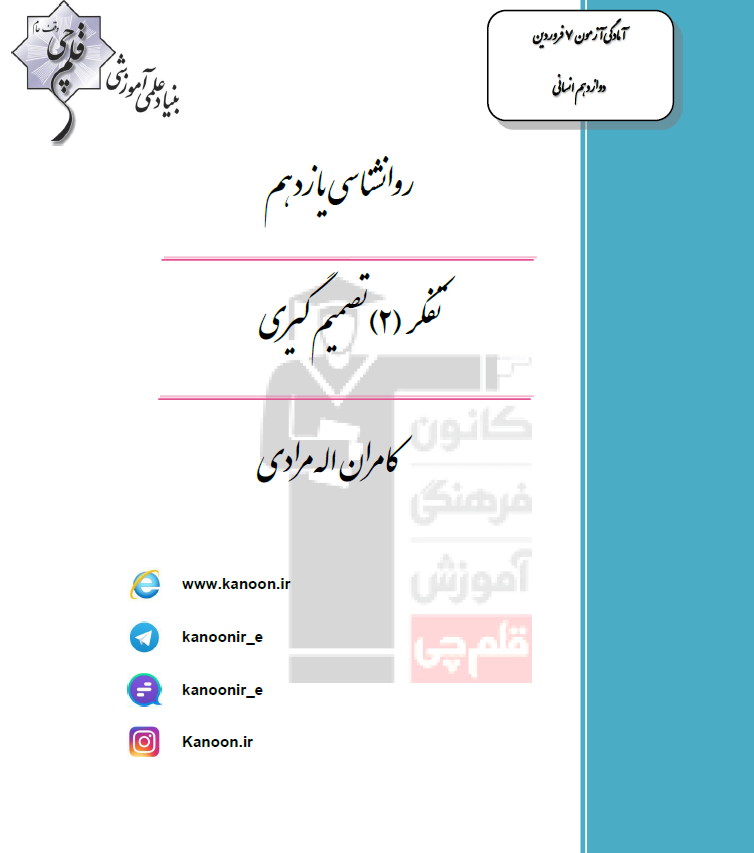 درسنامه روانشناسی یازدهم انسانیمبحث:تفکر 2 (تصمیم گیری)نویسنده: کامران اله مرادیدانلود درسنامه در فایل ضمیمه