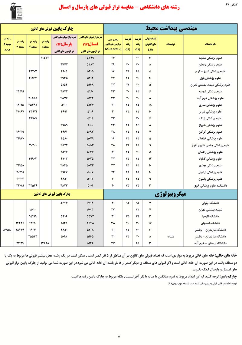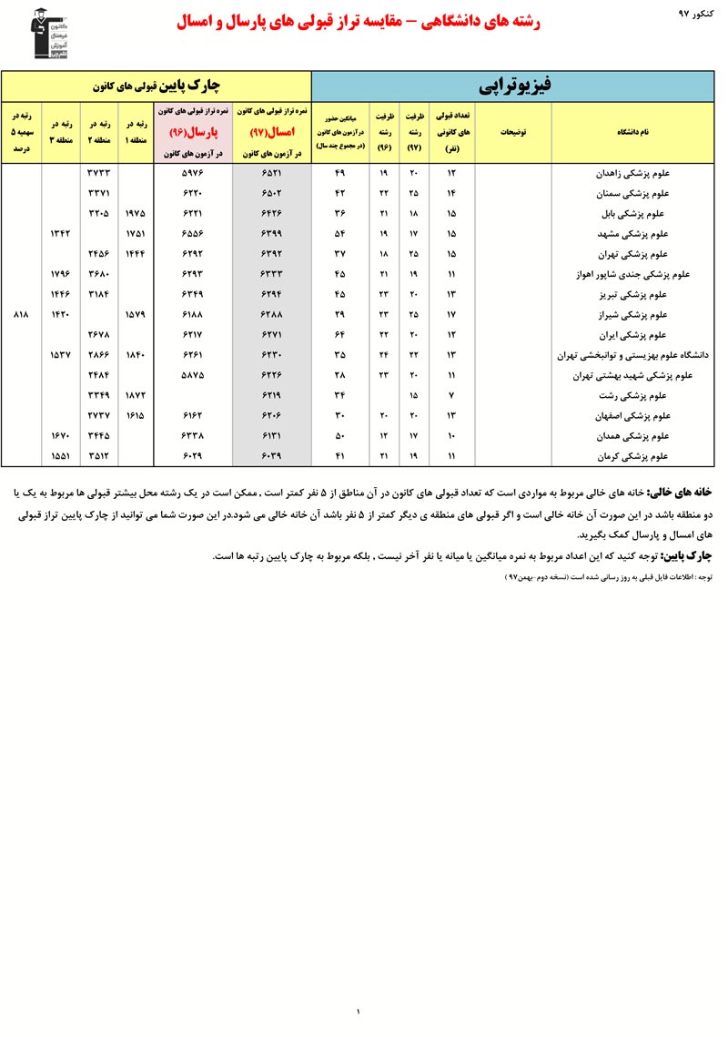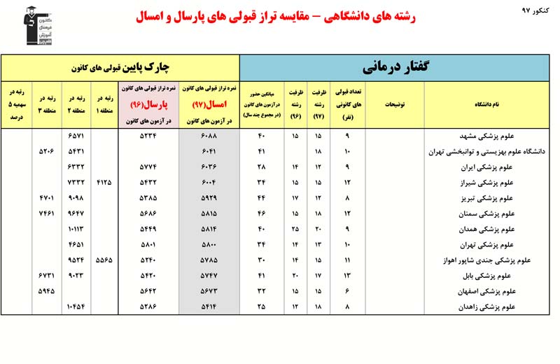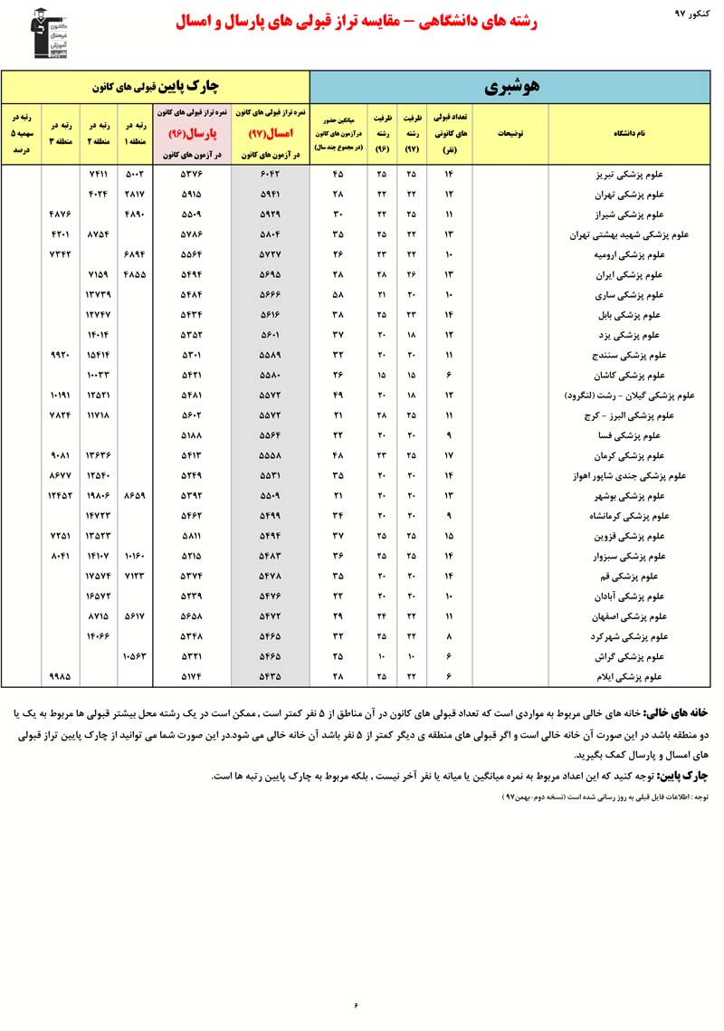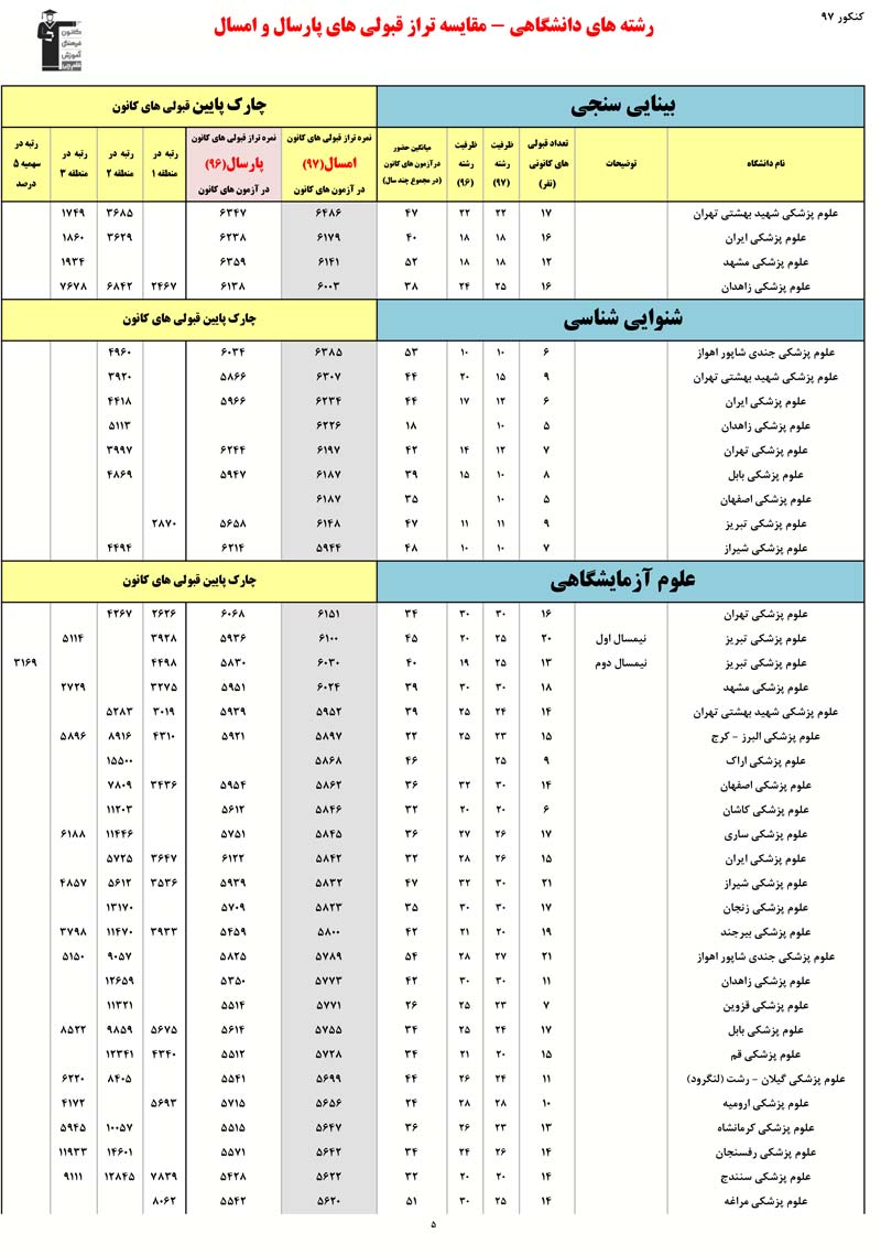 رتبه و تراز قبولی های کانونی در رشته های تجربی را در ادامه مشاهده کنید. در این فایل تراز کانونی قبولی ها در دو کنکور 96 و 97 مقایسه شده است. اطلاعات رتبه ها مربوط به کنکور 97 است.