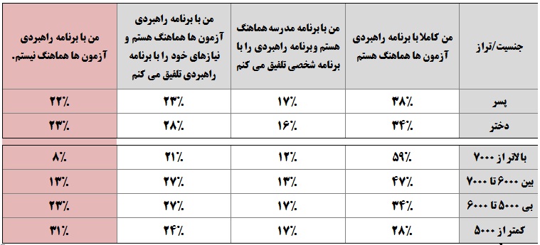 در آزمون 16 فروردین از دانش آموزان کنکوری سوال شده بود که «ميزان هماهنگي شما با برنامه راهبردي در پروژه آتی (3آزمون آینده) چقدر است؟»