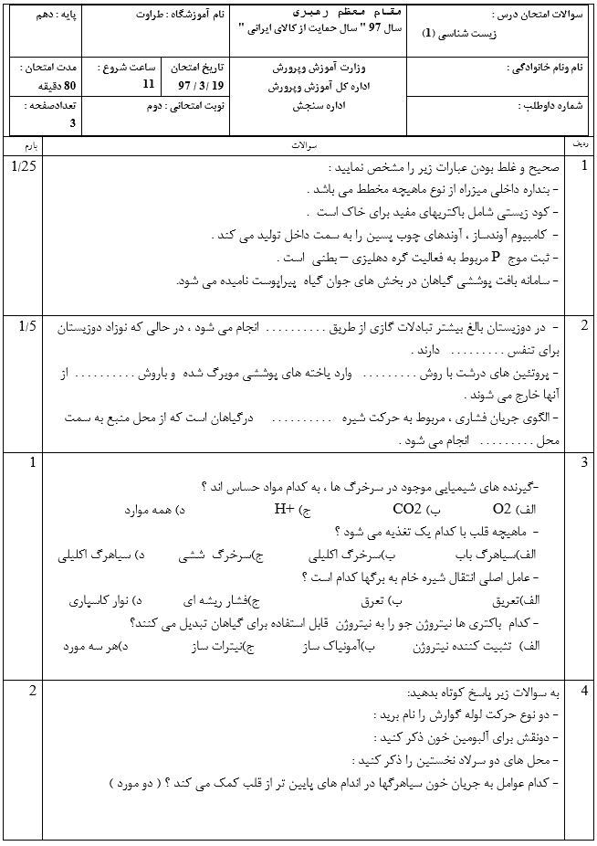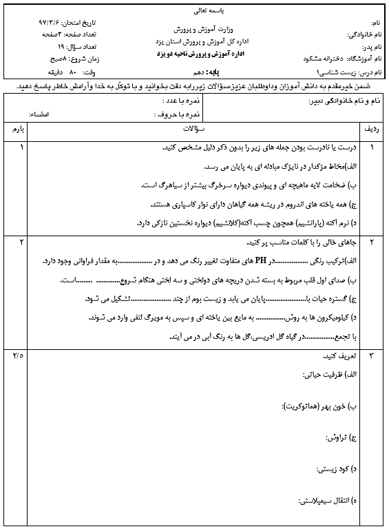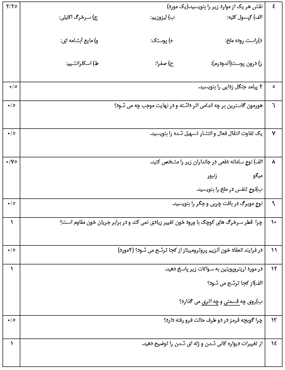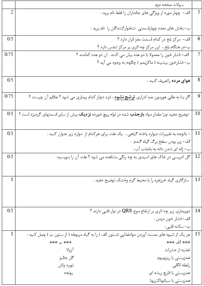 برای دیدن نمونه سوالات بیشتر درس زیست میتوانید به صفحه مقطع خود در سایت کانون (http://www.kanoon.ir/Public/ExamQuestions?group=25&lesson=163)مراجعه نمایید.