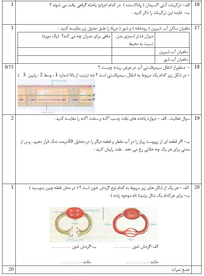 برای دیدن نمونه سوالات بیشتر درس زیست می توانید به صفحه مقطع خود در سایت کانون (http://www.kanoon.ir/Public/ExamQuestions?group=25&lesson=163)مراجعه نمایید.