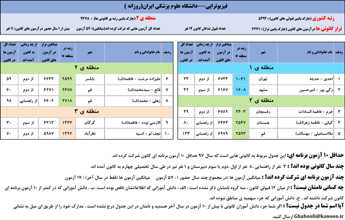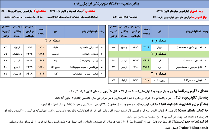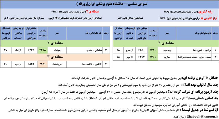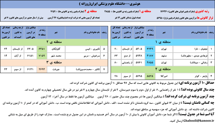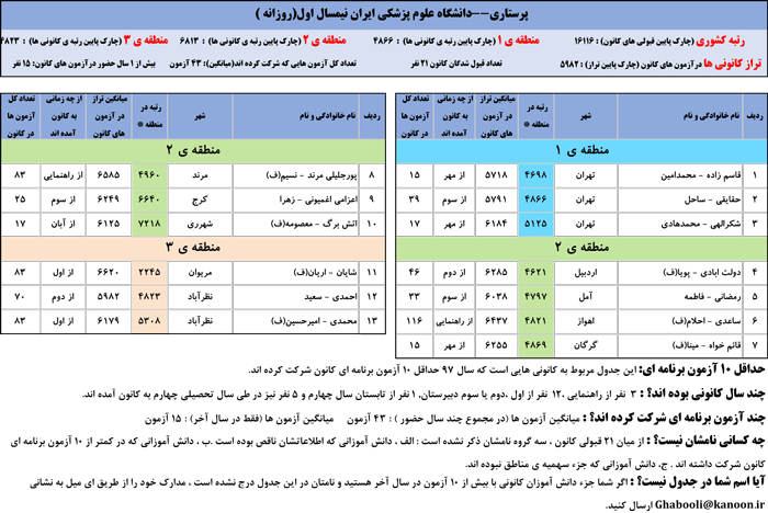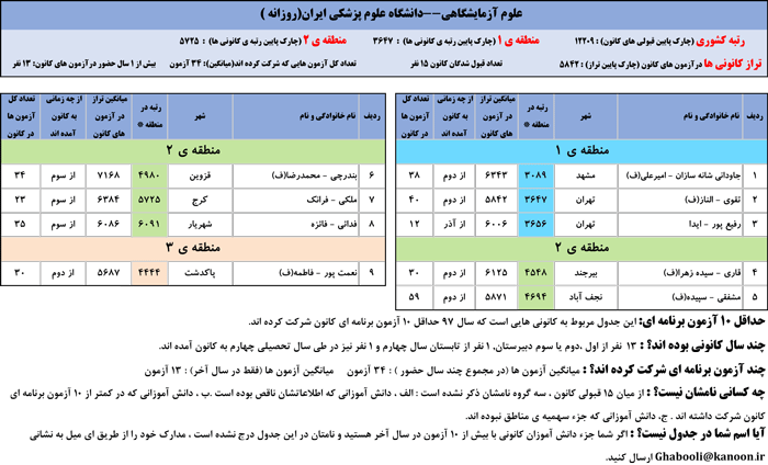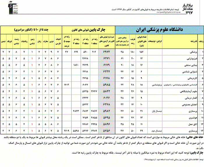 یادگار ماندگار : قبولی های کانونی دانشگاه علوم پزشکی ایران در همه رشته ها در سال های 96 و 97 ادامه مشاهده کنید.فایل با کیفیت قبولی های سال 96 و 97 را در قسمت فایل های ضمیمه دانلود کنید.