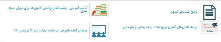 در قسمت راست صفحه هم خدمات وب کارت و برخی آزمونک ها ویژه همان دوره قرار دارد.