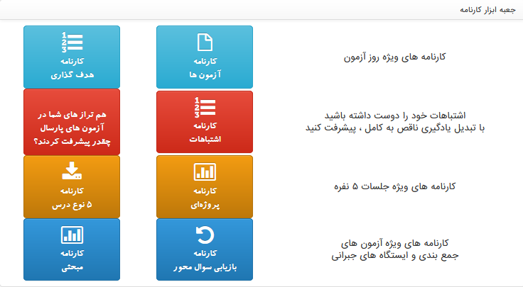 در این بخش هم با انواع کارنامه های خود آشنا می شوید که هریک به پیشرفت شما کمک زیادی می کند.